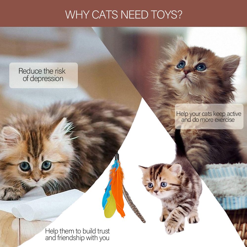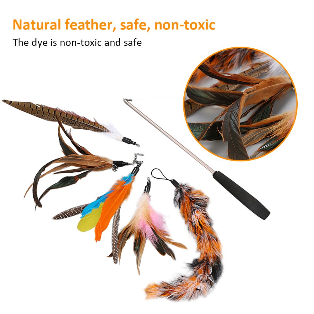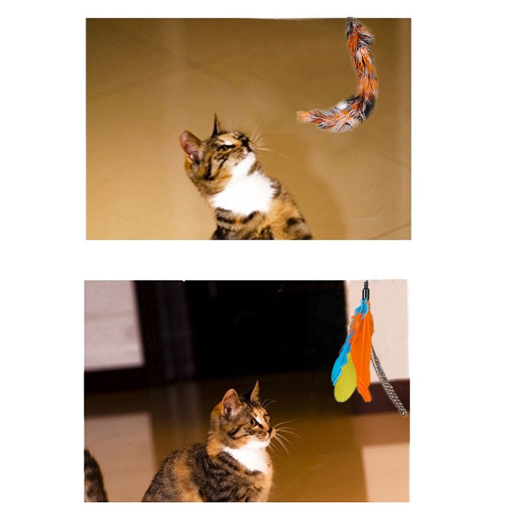 Package Includes: Comes with 5 pcs feathers and 1 pcs wand. The feather\'s head is replaceable to make more freshness and fun, cats won\'t be boring anymore. The bell on the feather can attract the attention of the cat.