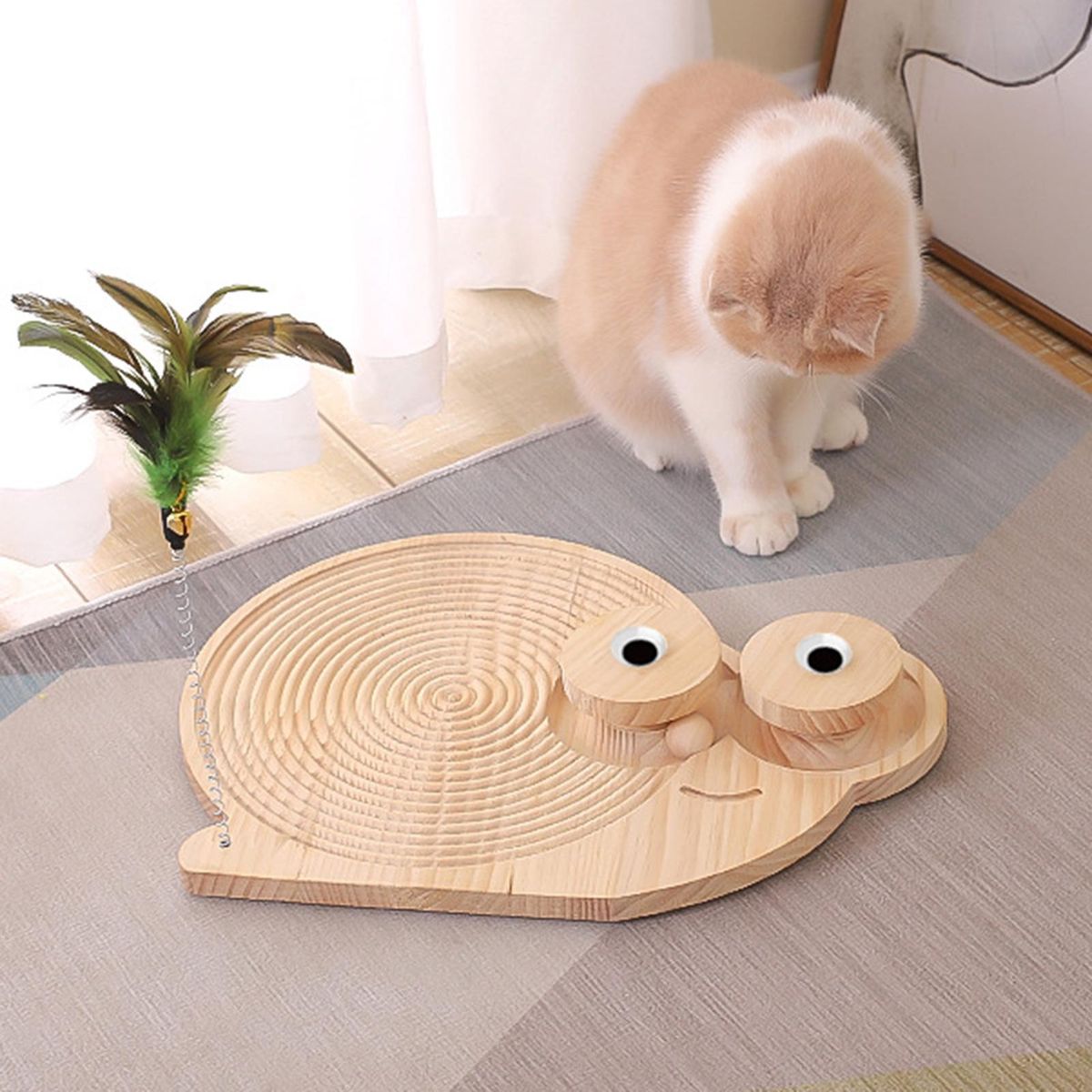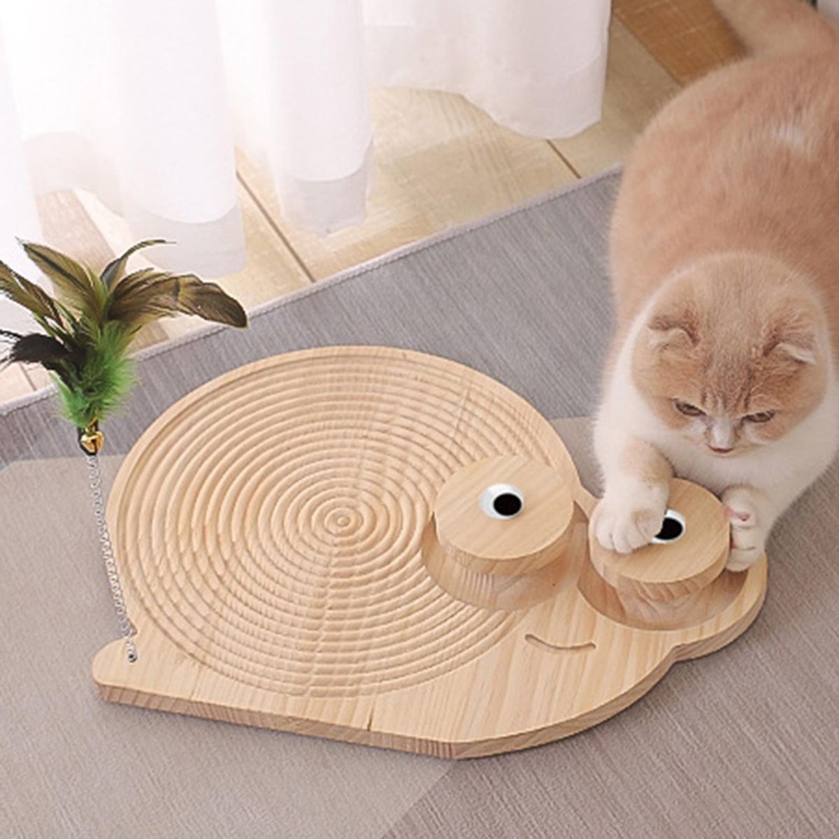 Cat toy design snail and owl shape, cute and interesting. It is a combination of turntable rotating ball, cat teasing stick, cat scratching board, a variety of functions.