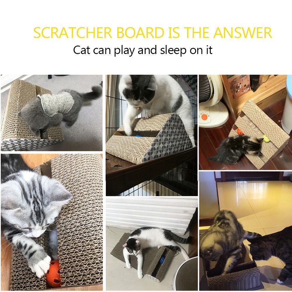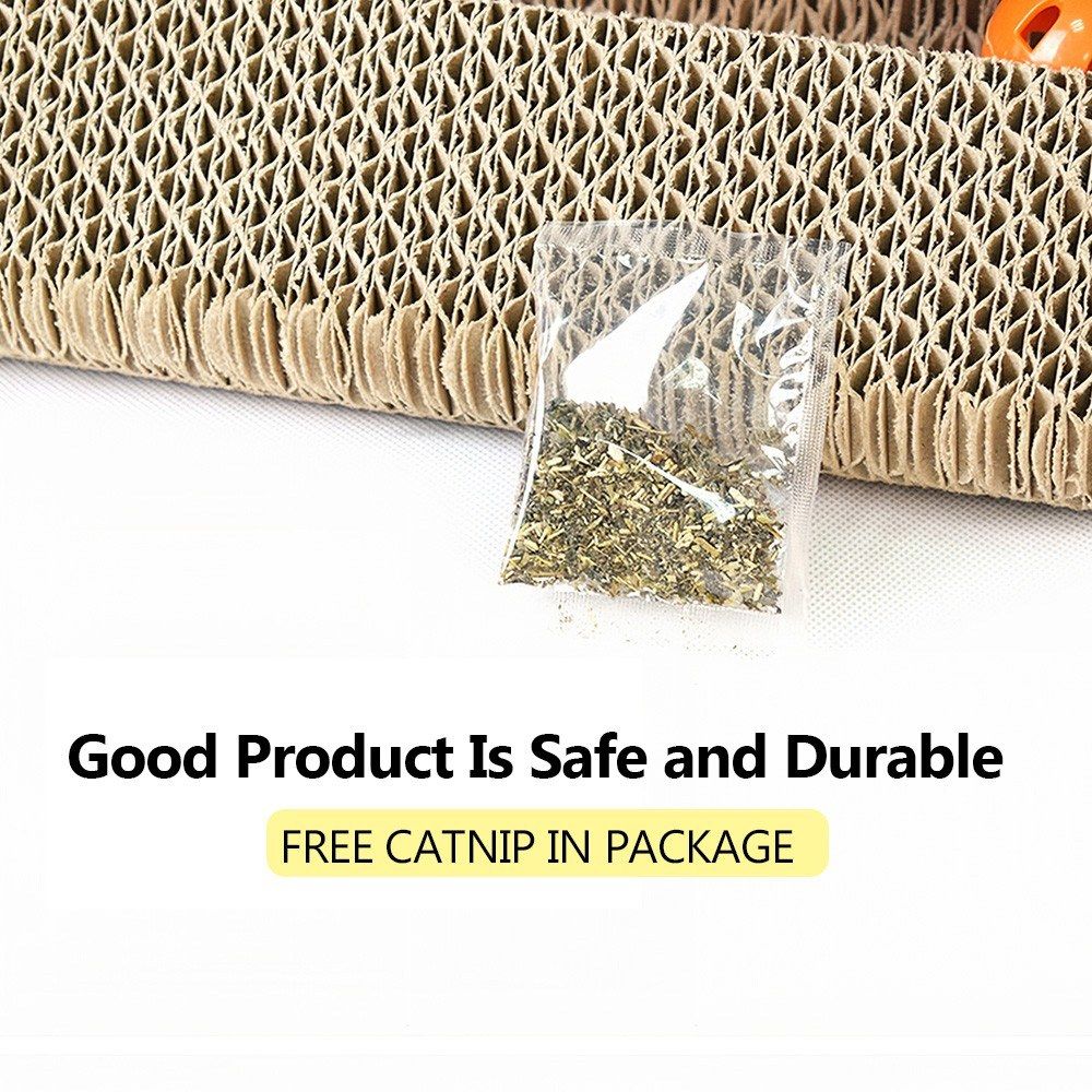 It\'s not only a scratcher! The inside bell-balls makes cat much happier and enjoy the playing. The scratcher is made of high quality corrugated cardboard, heavy density and environment-friendly. Your cat will love playing on it for hours and enjoy so much fun!