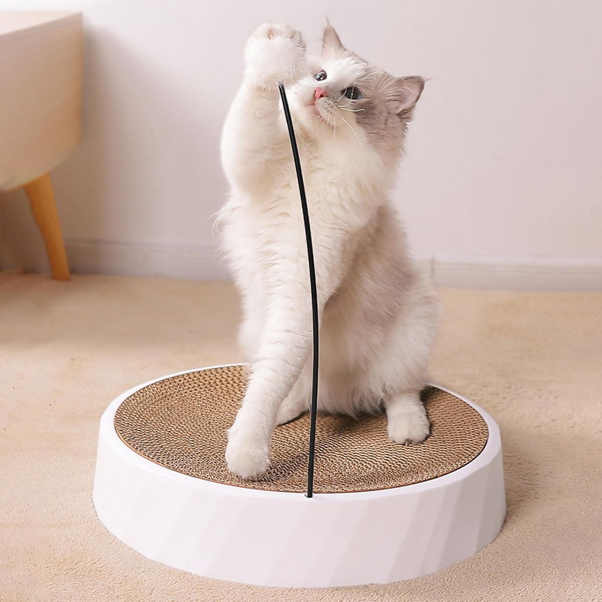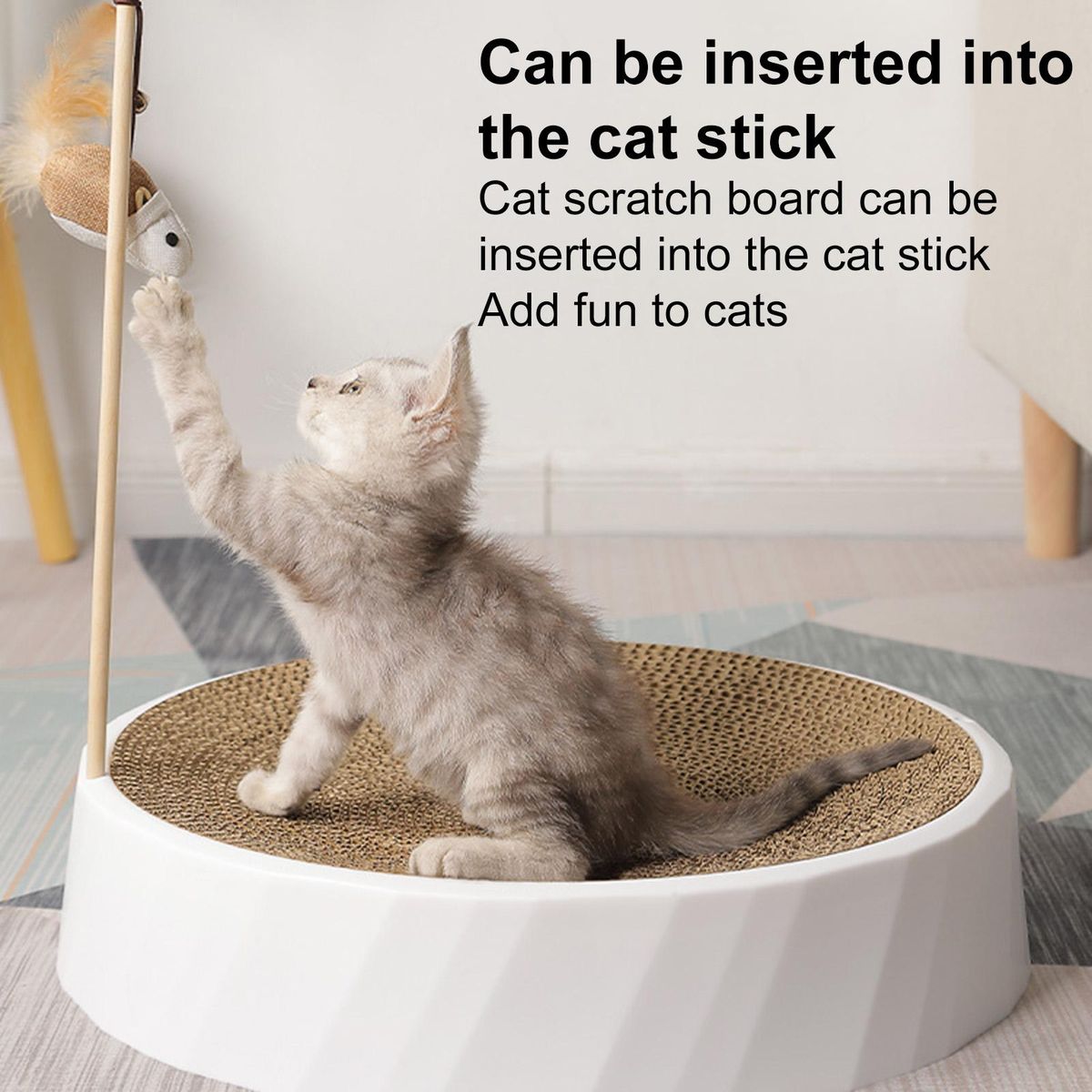 With the scratch-resistant and wear-resistant board, cats can grind their claws for a long time without flying scraps. Its core is replaceable, and it is thickened with high density. It has holes in its edge, which can be inserted with a cat-teasing stick.