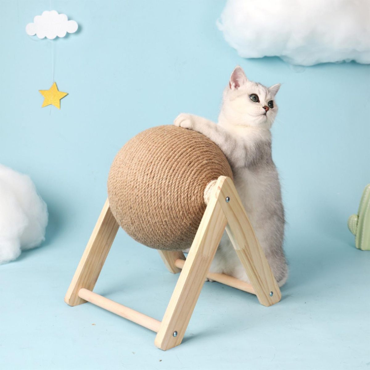Buy Cat Scratching Board Cat Toys Wooden Cat Scratching Balls Grind Claw Scratching Board Hand Wrapped Sisal Rope Ball Cat Climbing Frame Durable Cat Scratching Post Pet Supplies in Nigeria