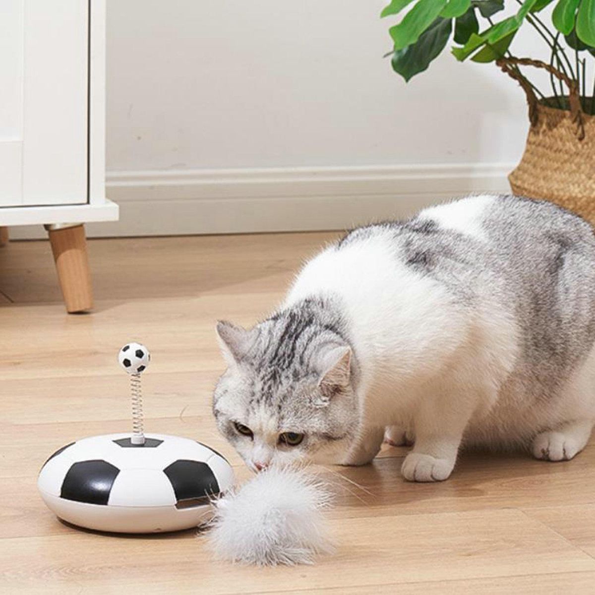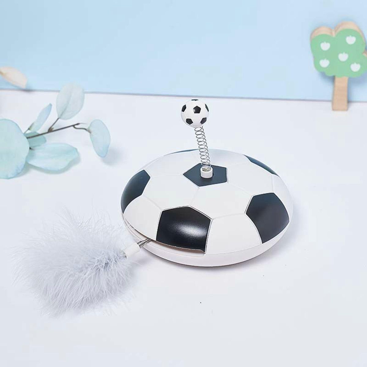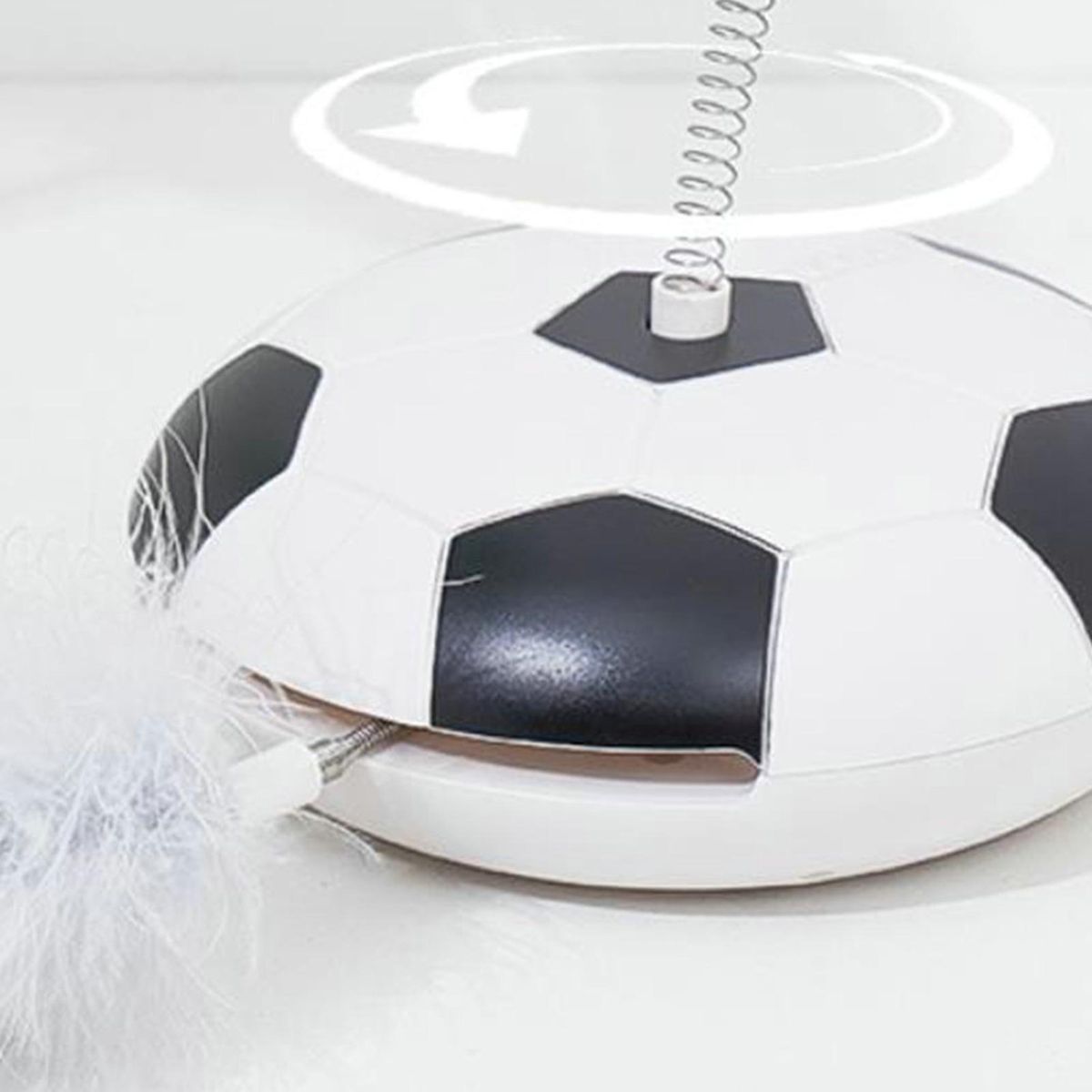 Designed to look like a soccer ball, this pet toy comes with a spring ball, feathers and lights to attract your pet's attention. It is self-rotating and automatically teases your pet.