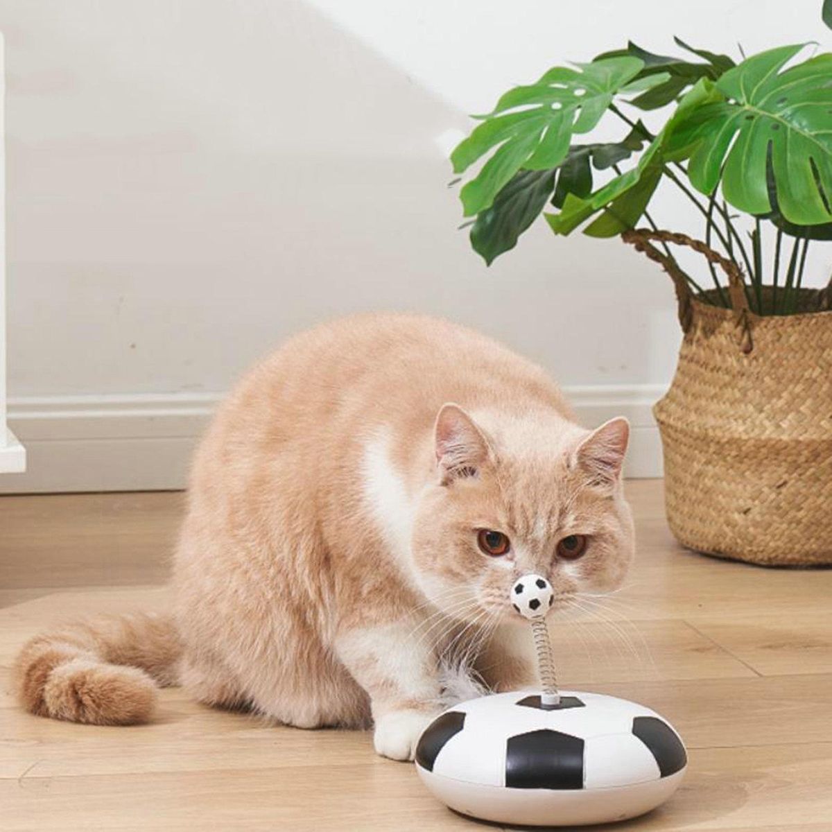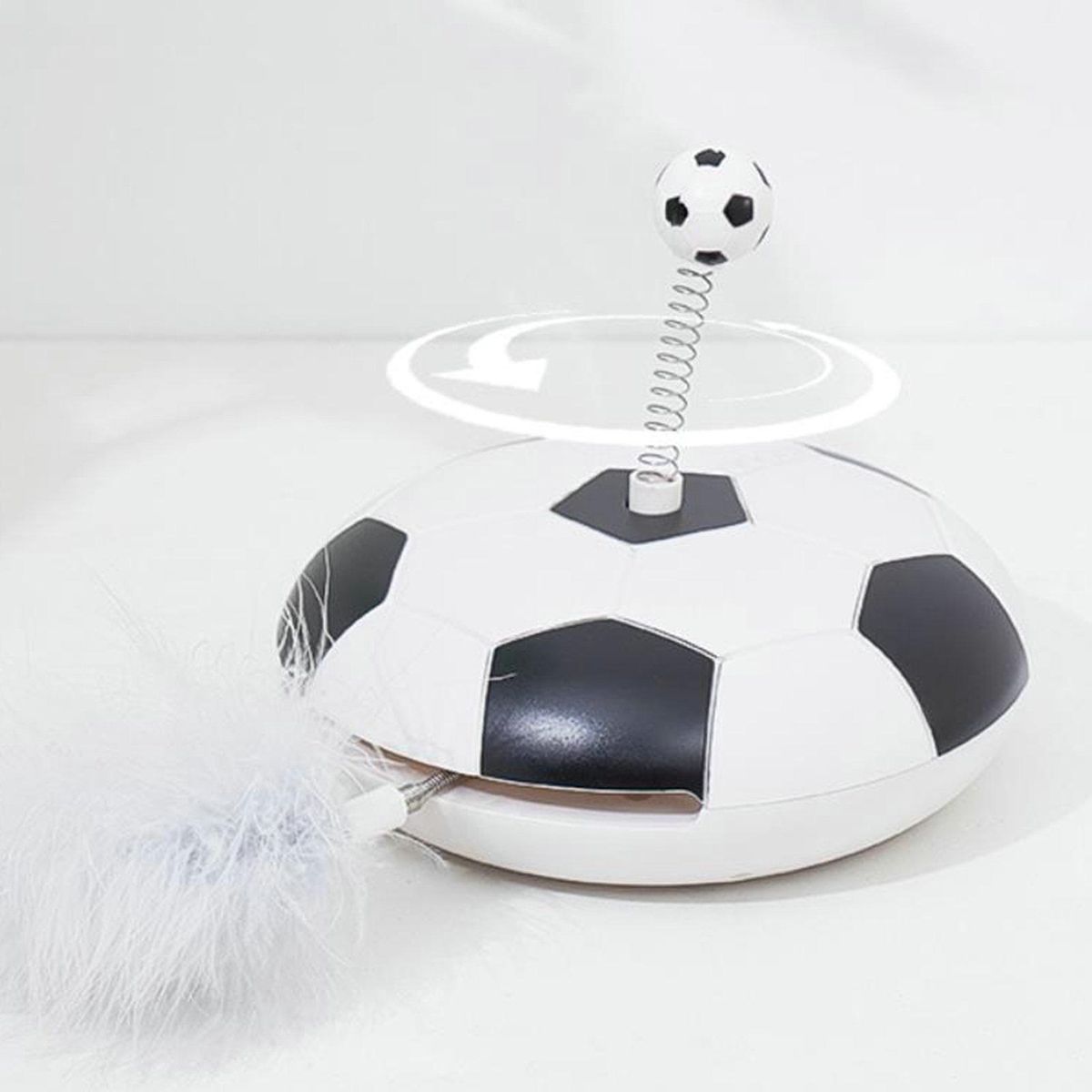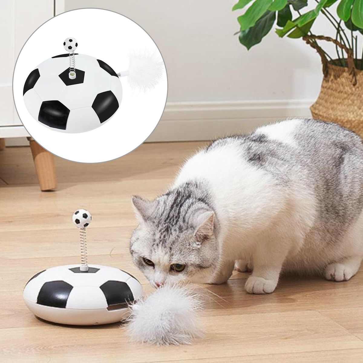 Designed to look like a soccer ball, this pet toy comes with a spring ball, feathers and lights to attract your pet's attention. It is self-rotating and automatically teases your pet.