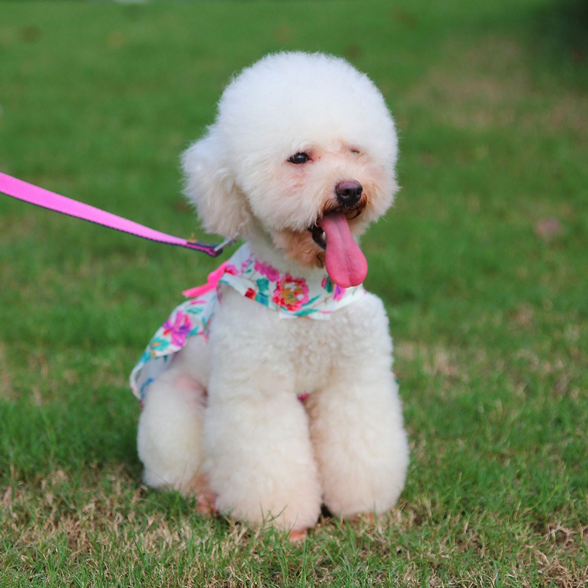 Definitely that this dress with stylish loose bowknot decor design and floral print design make the dog look more elegant and attractive. Soft and elastic, the dog does not feel tight when wearing it.