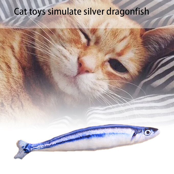 Cat Toy Simulation Fish Pet Plush Mint Funny Stick-Silver Dragon Fish-