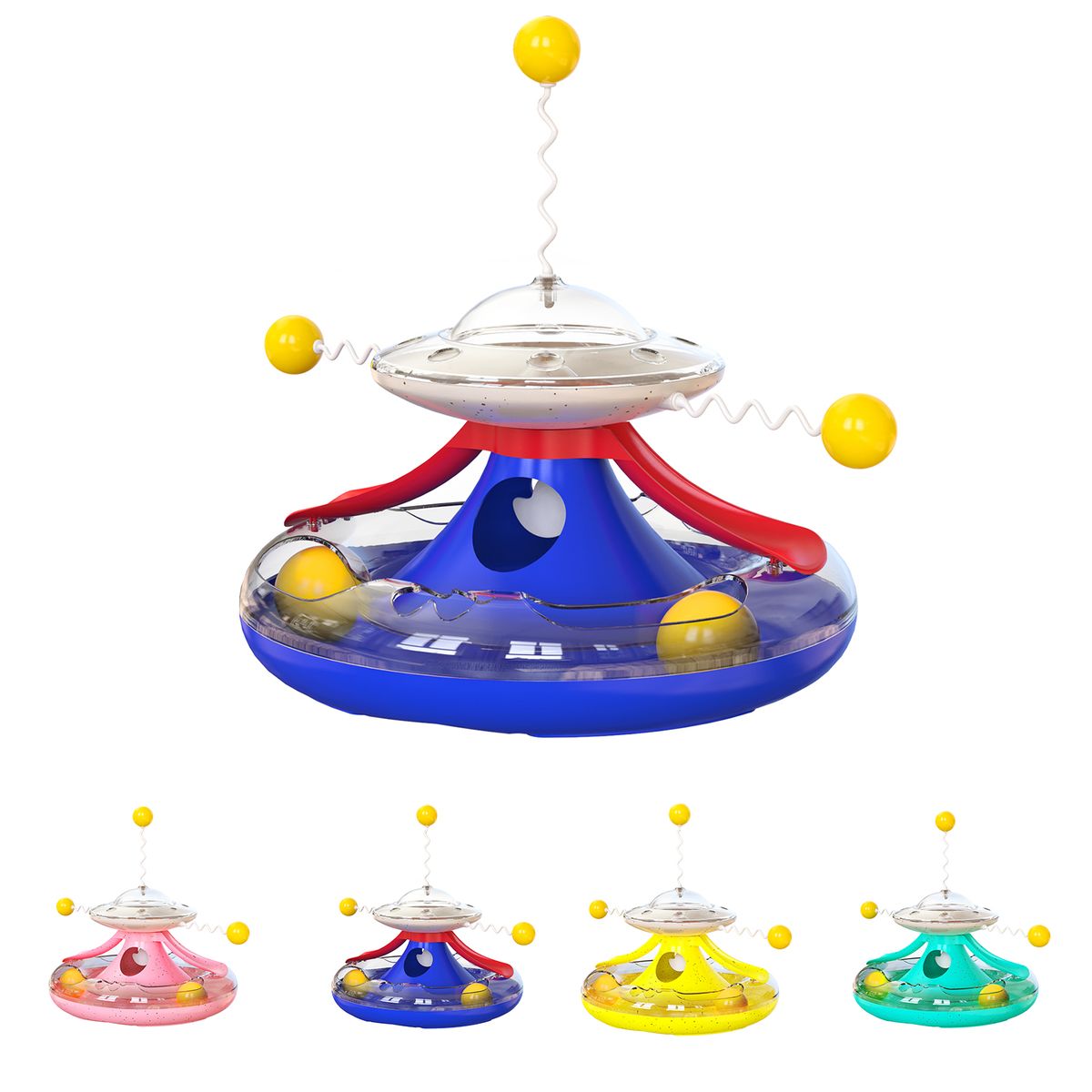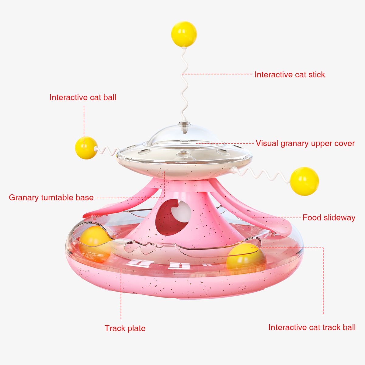 [Puzzle Food Dispensing Turntable Toy] The middle level of the toy is the cat turntable toy, which has the function of leaking food, and the turntable can be rotated under the external force of the cat. Open the transparent top of the turntable and put cat food or snacks inside. As the turntable spins, snacks can slide down to the snack aisle on either side and are given to the cat as a play reward, improve the cat\'s intelligence.