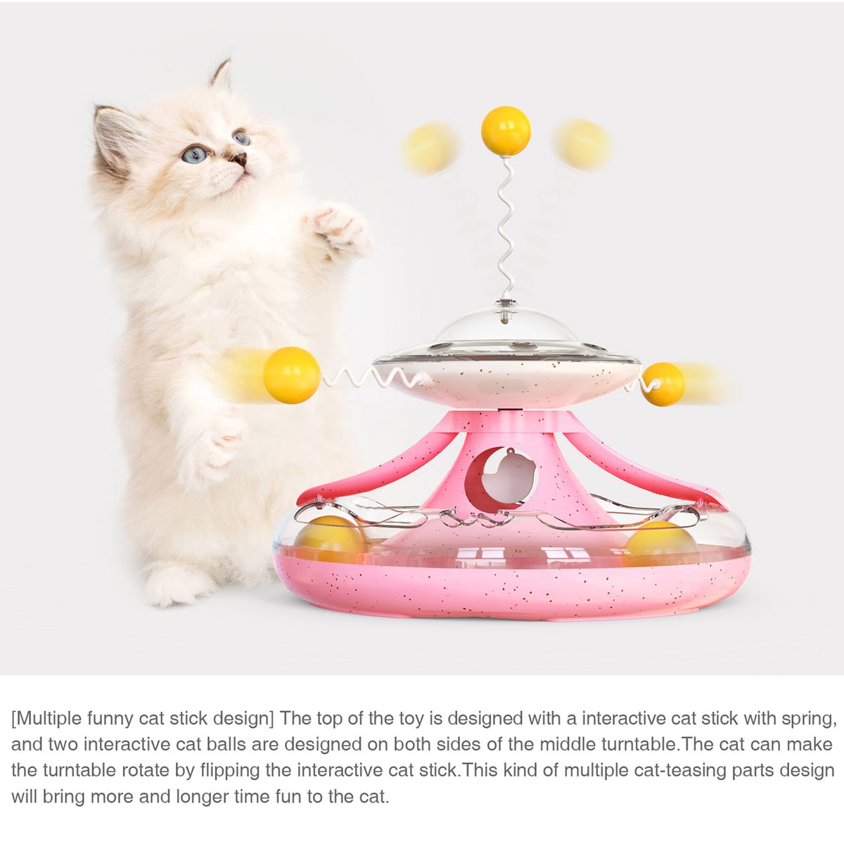 [Multiple funny cat stick design] The top of the toy is designed with an interactive cat stick with spring, and two interactive cat balls are designed on both sides of the middle turntable. The cat can make the turntable rotate by