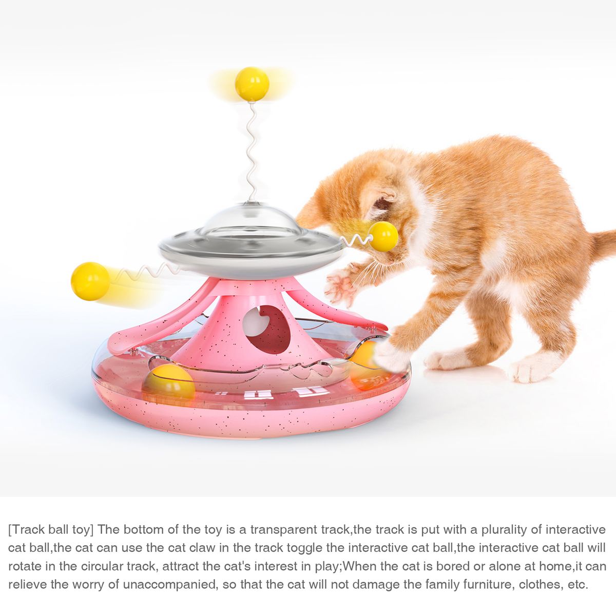 [Track ball toy] The bottom of the toy is a transparent track, the track is put with a plurality of interactive cat ball, the cat can use the cat claw in the track toggle the interactive cat ball, the interactive cat ball will rotate in the circular track, attract the cat\'s interest in play; When the cat is bored or alone at home, it can relieve the worry of unaccompanied, so that the cat will not damage the family furniture, clothes, etc.