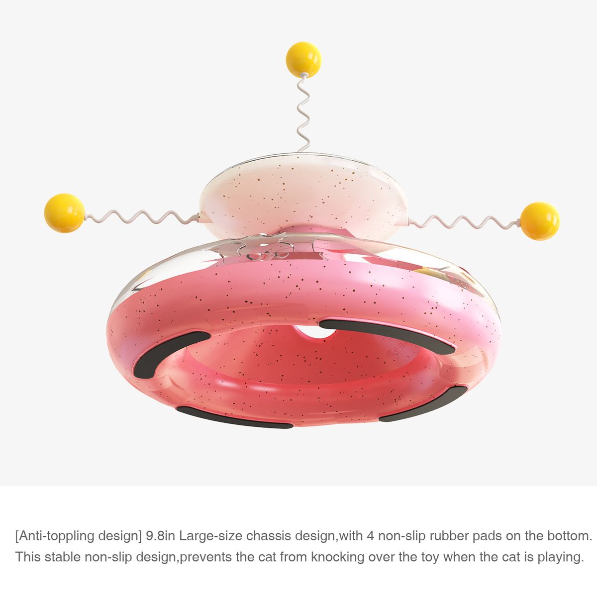 [Anti-toppling design] 9.88in Large-size chassis design, with 4 non-slip rubber pads on the bottom. This stable non-slip design prevents the cat from knocking over the toy when the cat is playing.