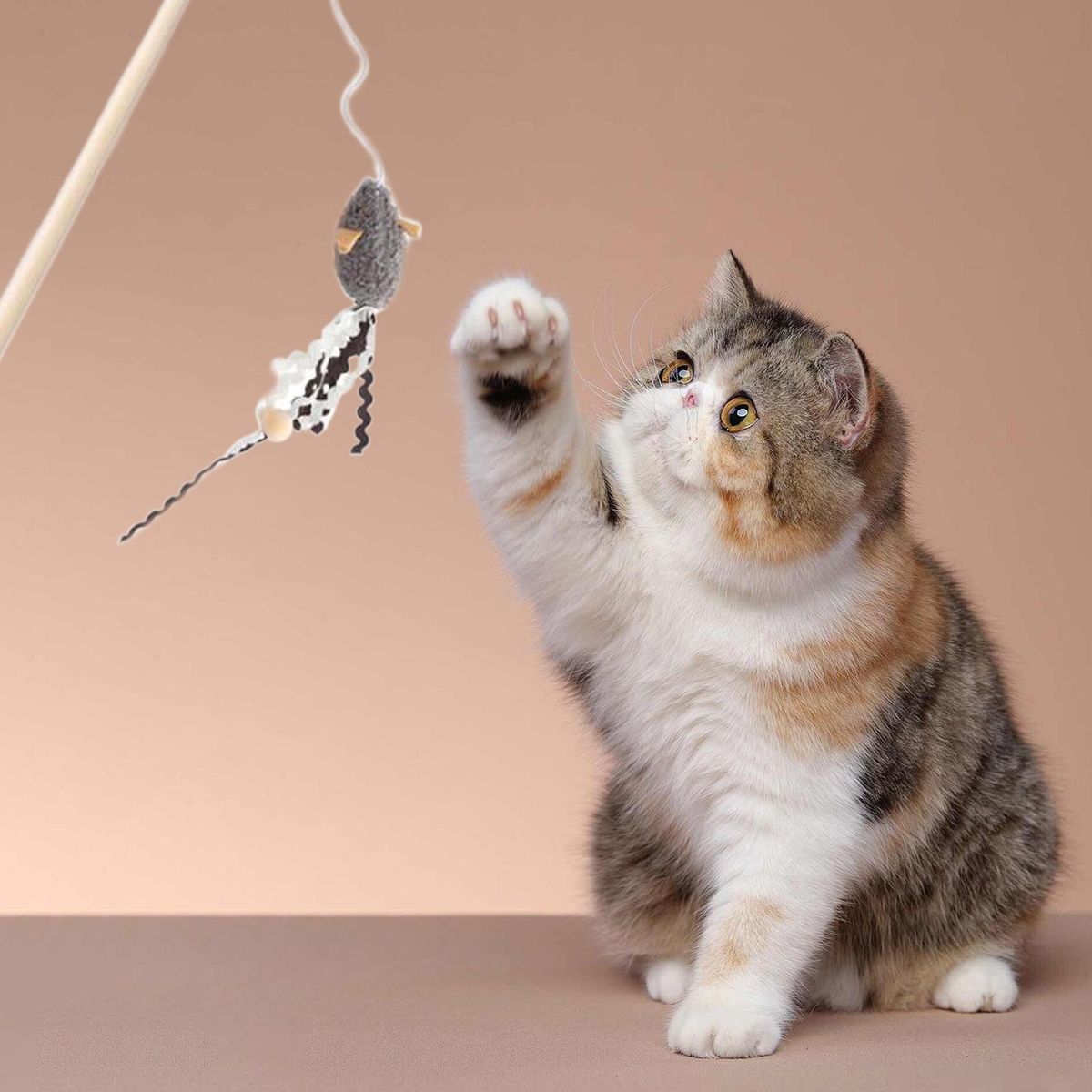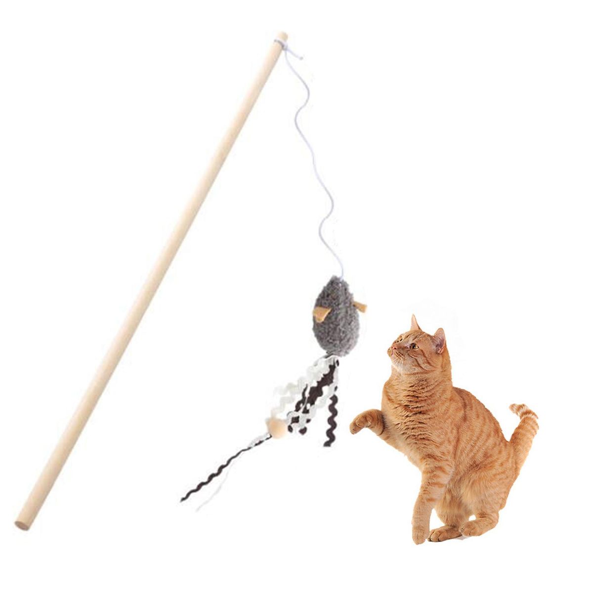 Designed with a simulated mouse and tasseled fabric, this cat teaser can attract the attention of kittens and can be a good way to stimulate your pet's interest in chasing and playing and increasing movement.