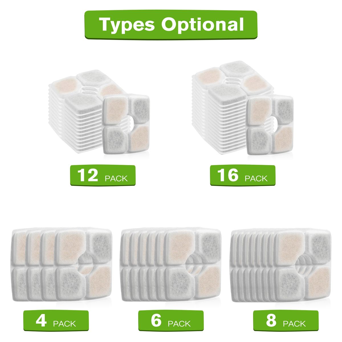 Optional types: 4 pack; 6 pack; 8 pack, 12 pack, 16 pack