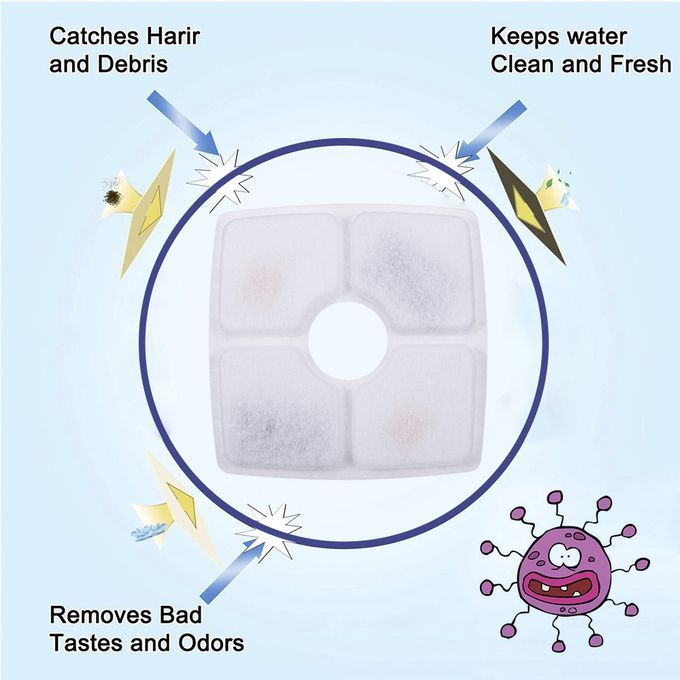 Replacement filter for cat fountain. Keep your cat's drinking water is fresh, clean and safe. Helping you to take care of your cat's health. Most of the filters in the market are made of activated carbon. But this filters are made of high quality activated carbon, resin and cotton mesh. The water is deeply purified and safer.