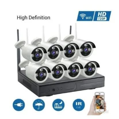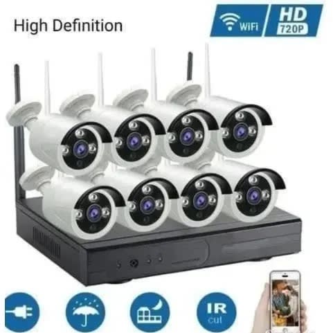 This wireless wifi NVR CCTV system comes fully packed with 8 weatherproof HD cameras for both outdoor and indoor installation. It is completely wireless because there is no wire connection between the DVR and the camera units. The signal transmission is by wifi network and 5.8ghz frequency signal. The system is viewed by smart phone and also through bigger LCD screens or TV screens with the HDMI or VGA ports.It is a multi user system, this means that more than 2 or more people can configure the system to their various mobile phones to view the location footages.View, record, picture and save your locations from anywhere and anytime worldwide under a very high definition transmission.A great security and surveillance wireless CCTV system for homes, offices, warehouses, stores and super marts, etc.