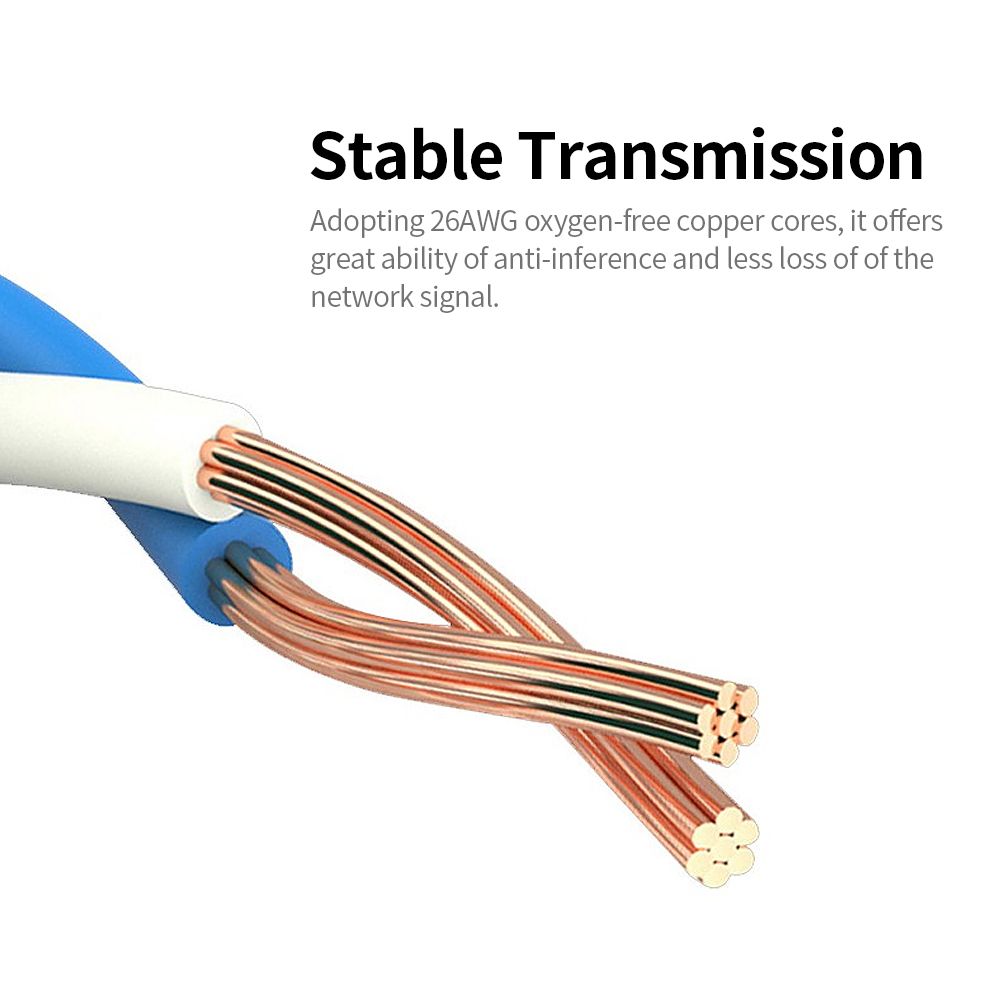 Stable Transmission. Adopting 26AWG oxygen-free copper cores, it offers great ability of anti-inference and less loss of of the network signal.
