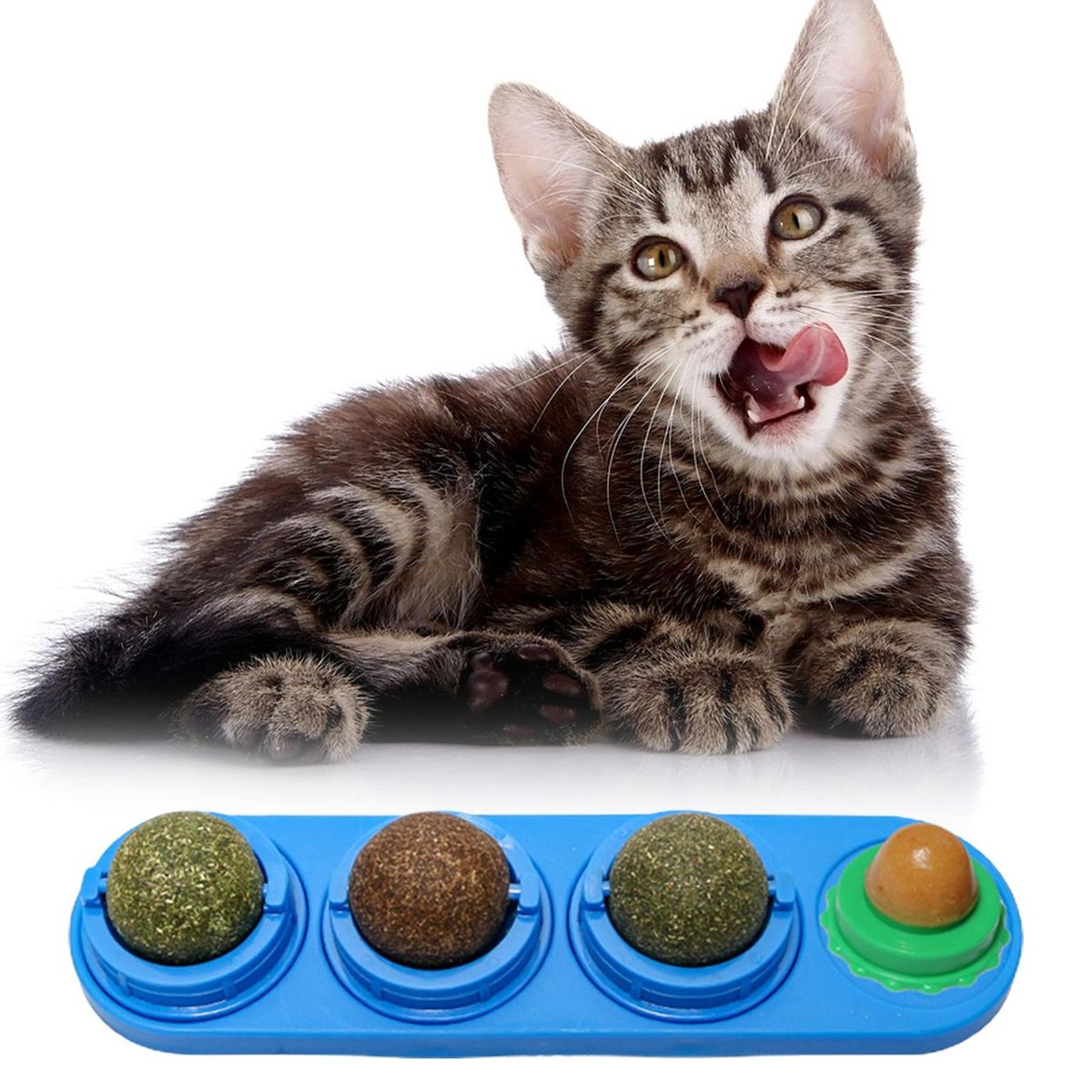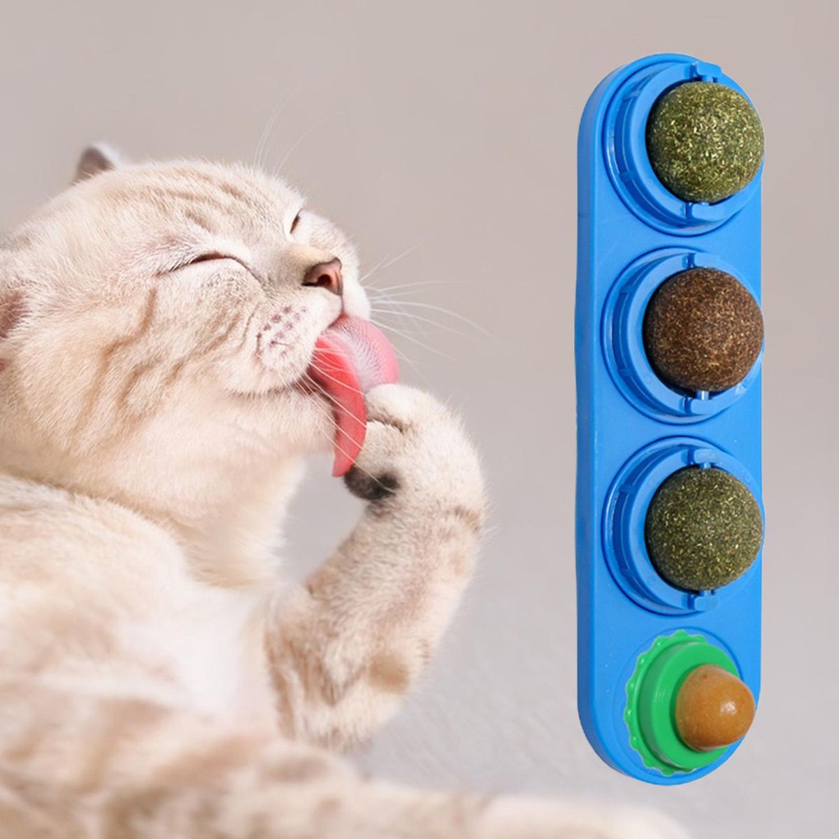 Our catnip ball, natural the perfect toy for your favorite kitty! made from pure natural plant extracts, this catnip ball is completely safe and harmless. its unique design allows it to easily stick to walls or other surfaces with a strong viscous force, ensuring it won't fall off when your kitten licks and plays. the catnip treat balls can even be rotated 360 degrees when licked, providing endless entertainment for your furry friend.