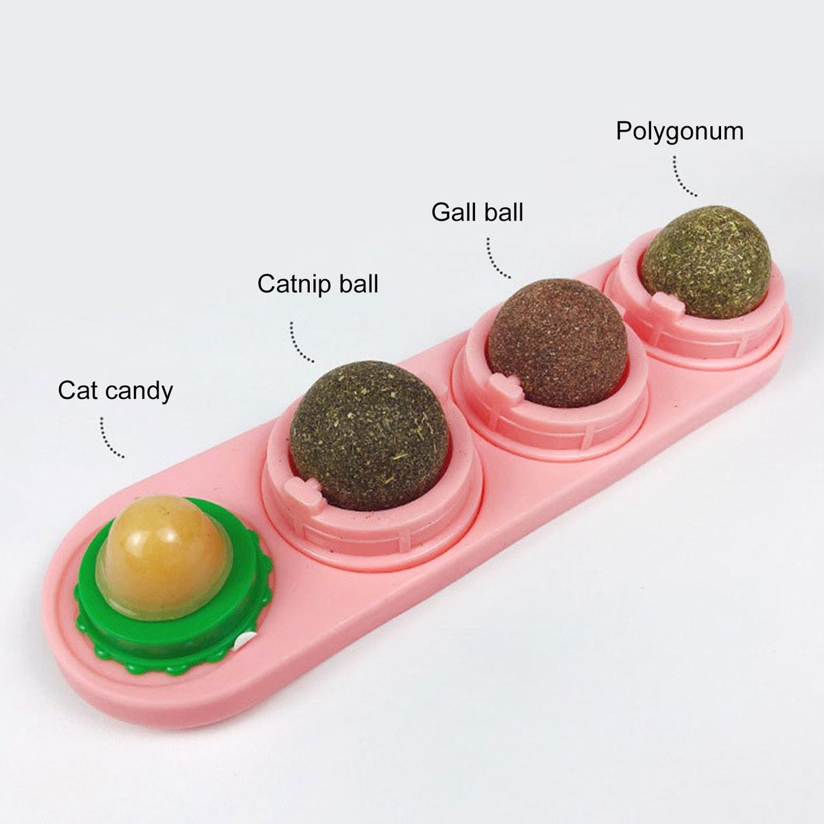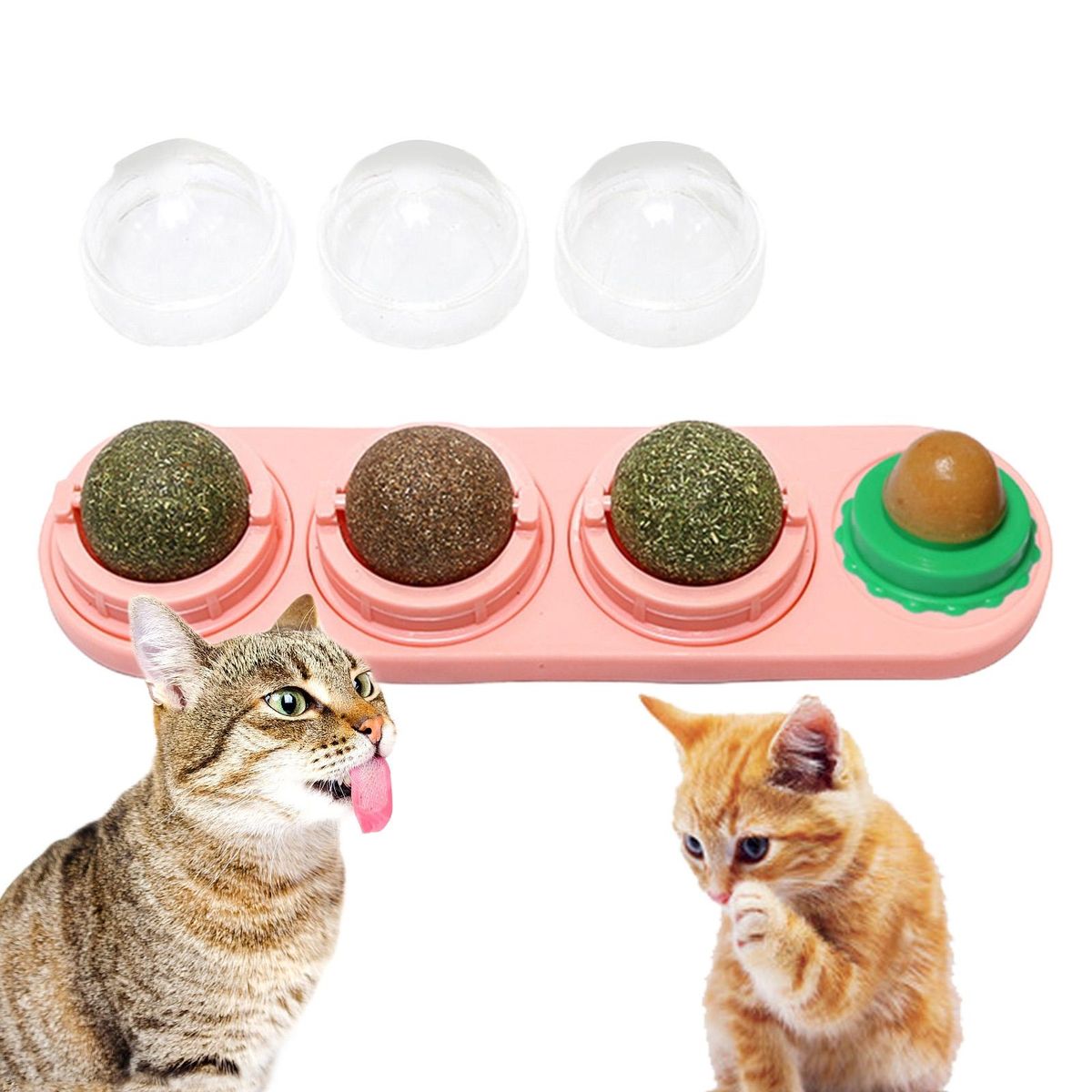 Our catnip ball, natural the perfect toy for your favorite kitty! made from pure natural plant extracts, this catnip ball is completely safe and harmless. its unique design allows it to easily stick to walls or other surfaces with a strong viscous force, ensuring it won't fall off when your kitten licks and plays. the catnip treat balls can even be rotated 360 degrees when licked, providing endless entertainment for your furry friend.