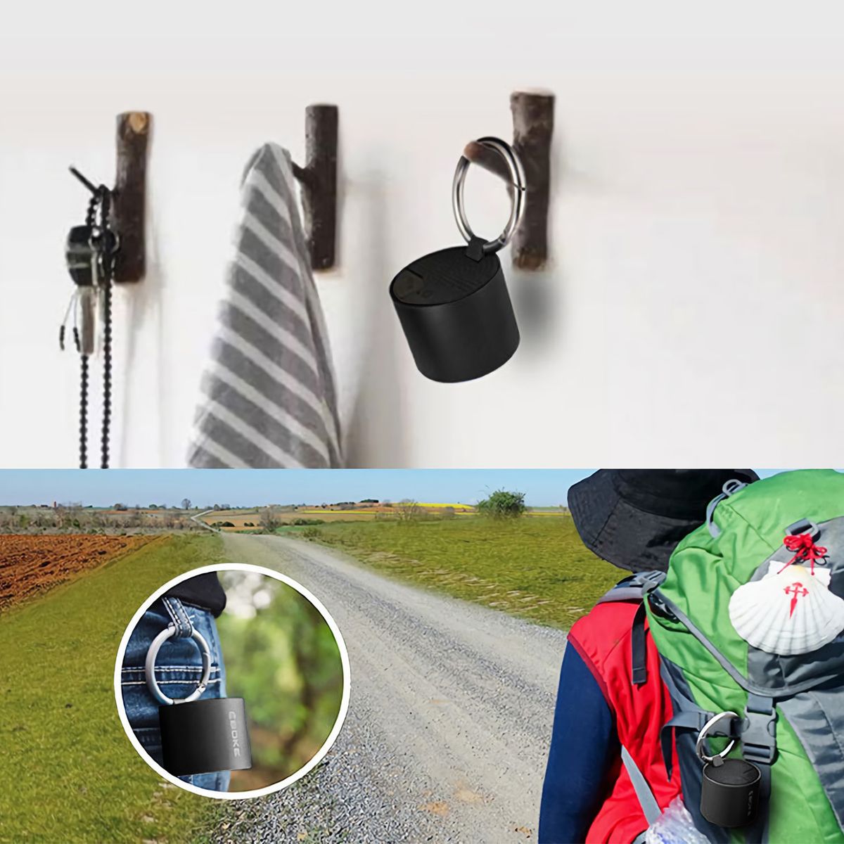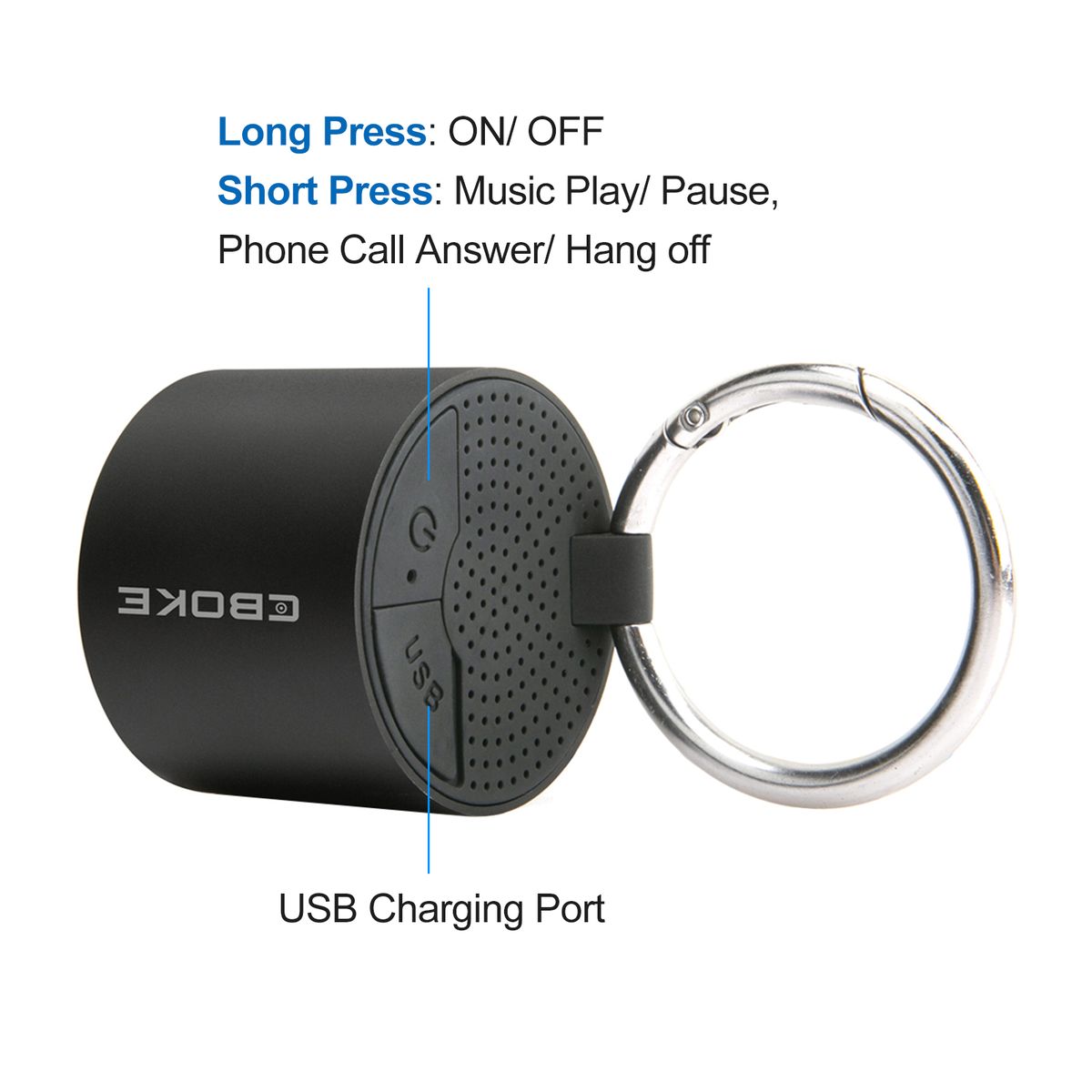 Aluminum alloy frosted shell, concise appearance, mini size, portable and lightweight. Attached metal buckle for easy carry or use.