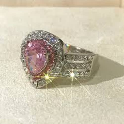 Captivating Design: This ring boasts a creative and trendy design, featuring three layers of sparkling Pink Water Drop Cubic Zirconia stones. The white gold color adds a touch of sophistication, making it perfect for weddings, engagements, parties, and other special occasions.