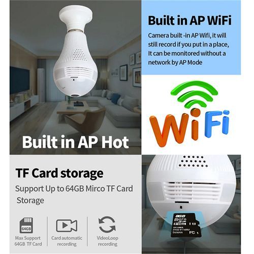 Wireless connect with camera no need wiredLAN cable, easy to setup ip camera bulb