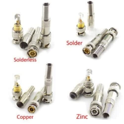 The BNC connector is used to connect the CCTV camera to the Digital Video Recorder (DVR) via RG59 cable. It is also known as screw-on BNC connector, as it has a screw terminal where the copper core of the RG59 cable is attached to.