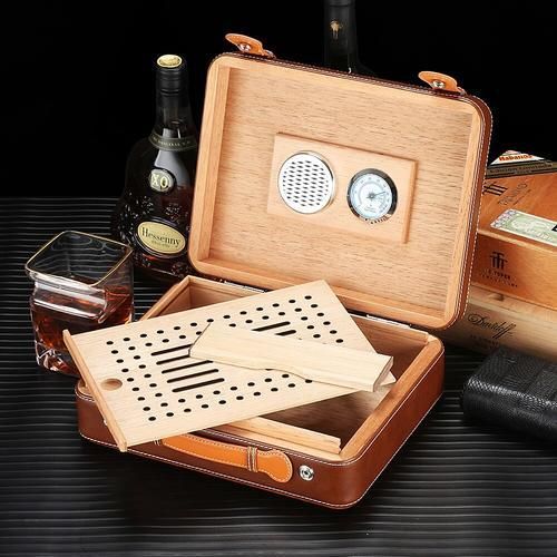 Buy Cedar Wood Cigar Humidor Portable Suitcase Style Travel Cigar Case Hygrometer Humidifier Humidor Cigar Box in Nigeria