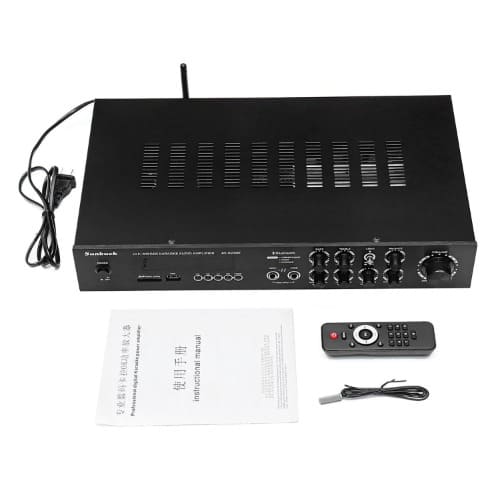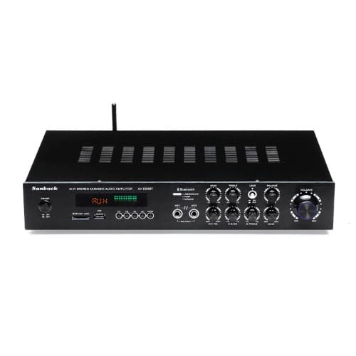 With Bluetooth, remote control, USB SD Jack, FM Radio, Karaoke with reverb, can connect 7 speakers + 1 active subwoofer.
