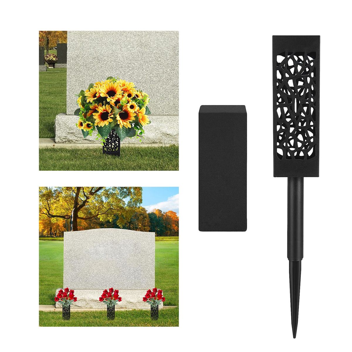 【Applicable】: The Memorial flower vases for cemetery, can be widely used for tombstone and monument, allowing you to arrange flower decorations in cemeteries, they can also be applied for funerals, cemeteries and memorial day events.