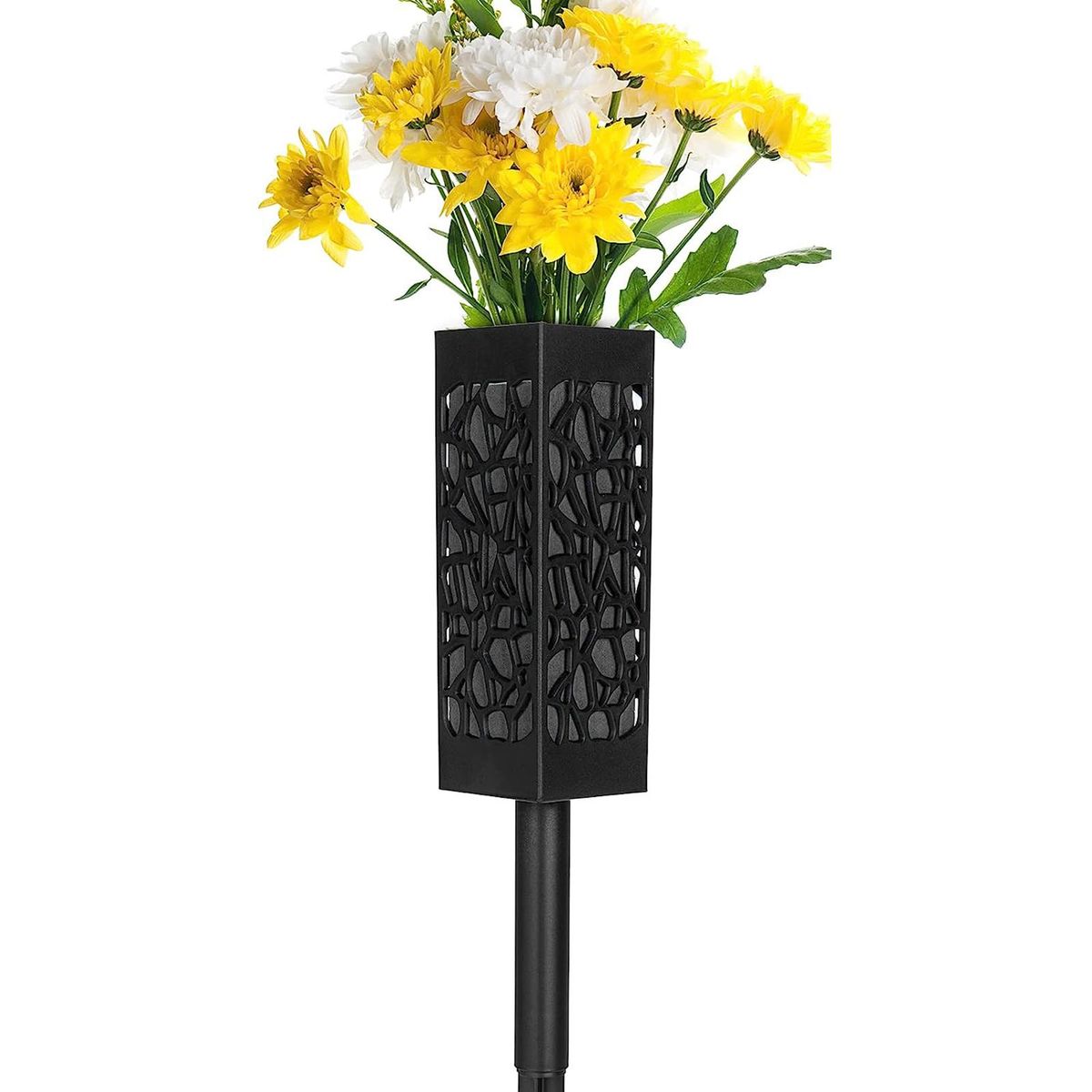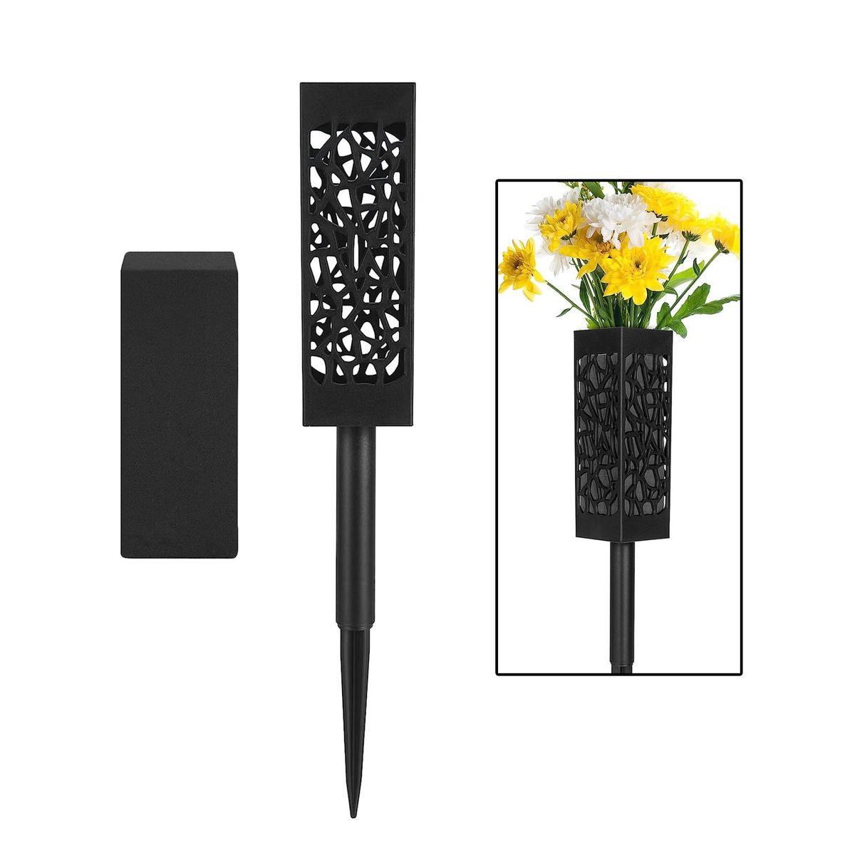 【Hollow Design】: Memorial cemetery vase stake with beauty hollow drainage design to withstand heavy rain and drain excessive water, which makes flower alive time.