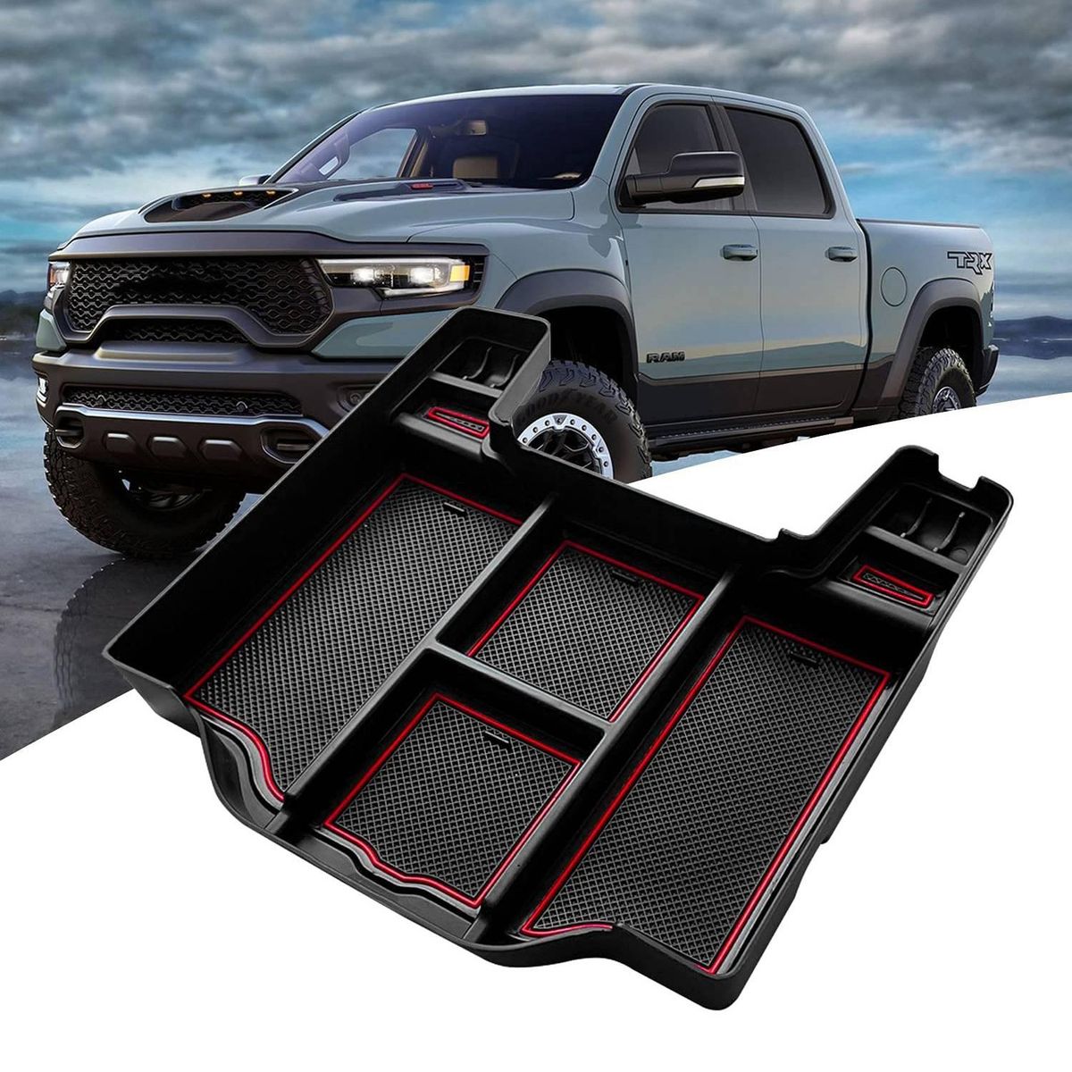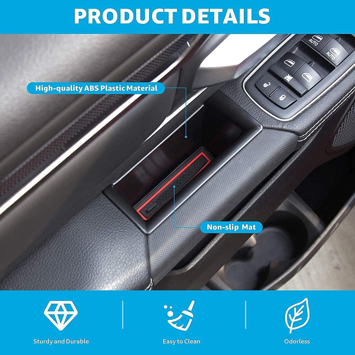 Premium Material: The for Dodge RAM 1500 Console Organizer Tray and Door Side Handle Storage Box made of solid ABS material, the edge thick enough, which is more strong and durable.