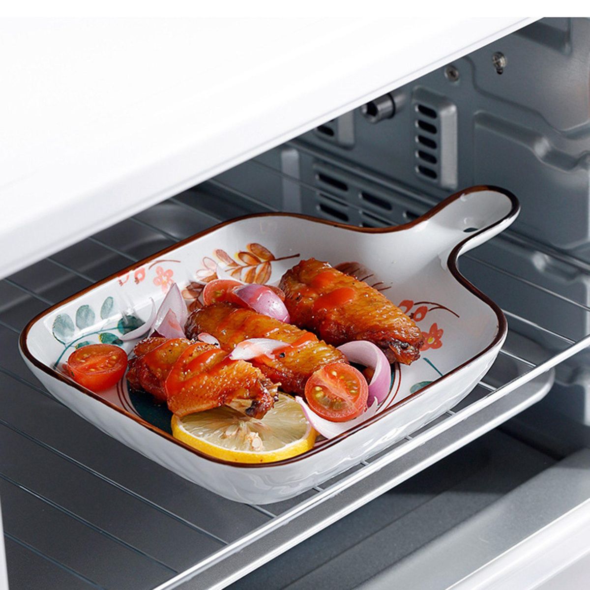 Made of ceramice, the baking tray is healthy.