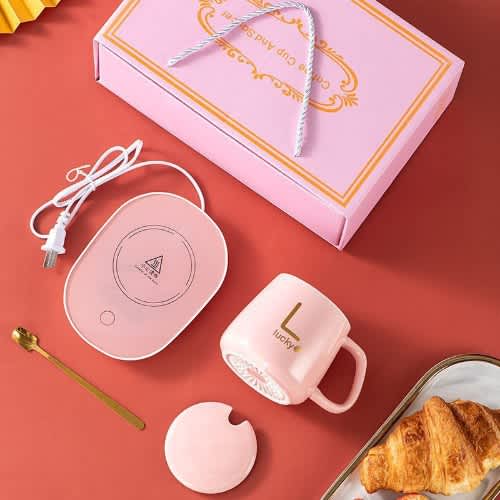 Buy Ceramic Coffee Mug With Cover And Teaspoon - Pink in Nigeria