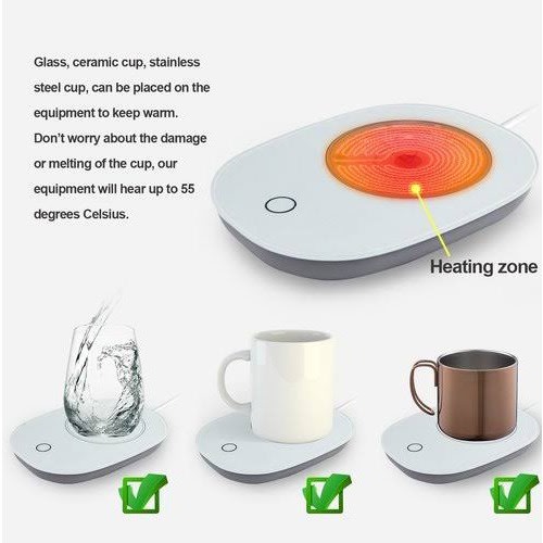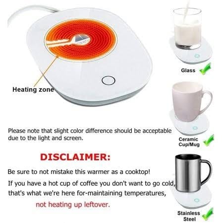 - Suitable for Most Cups: flat-bottomed cups with heat-resistant materials and cups of moderate thickness for better heating. There are cups with recessed design at the bottom, cups with heat insulation design, plastic cups that can not withstand 70 degrees of heat, such as mineral water bottles, cups with thick bottoms, not suitable for heating cup mats.