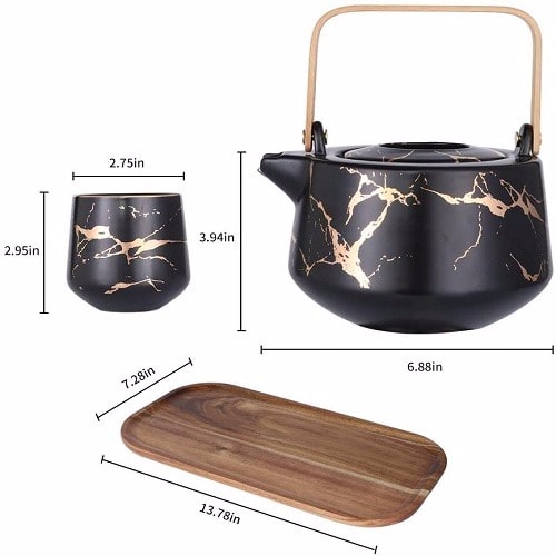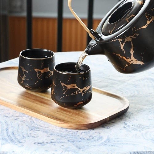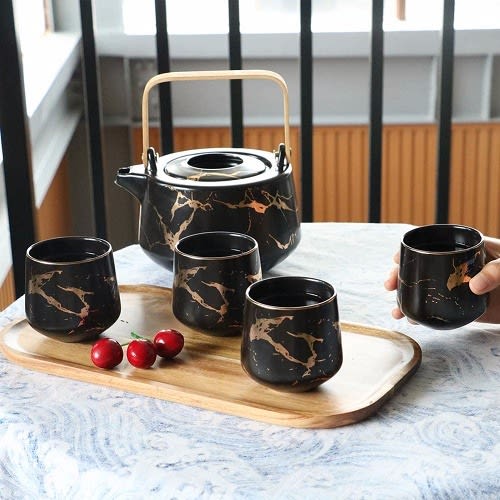 Buy Ceramic Tea Pot Set with Wooden Tray -4 Cups in Nigeria