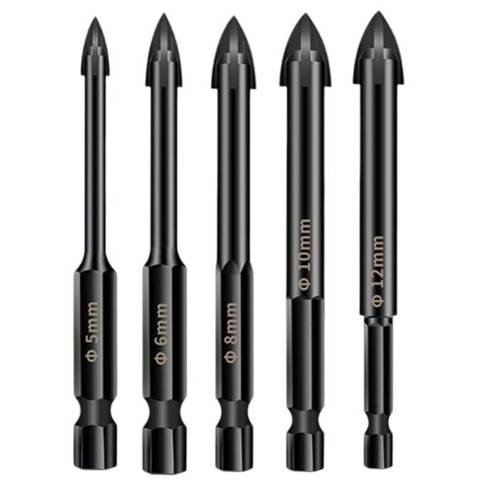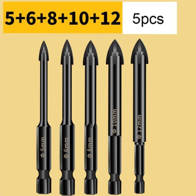 5Pcs C: 5x Cross Tile Drill Bit (6+6+8+10+12mm)