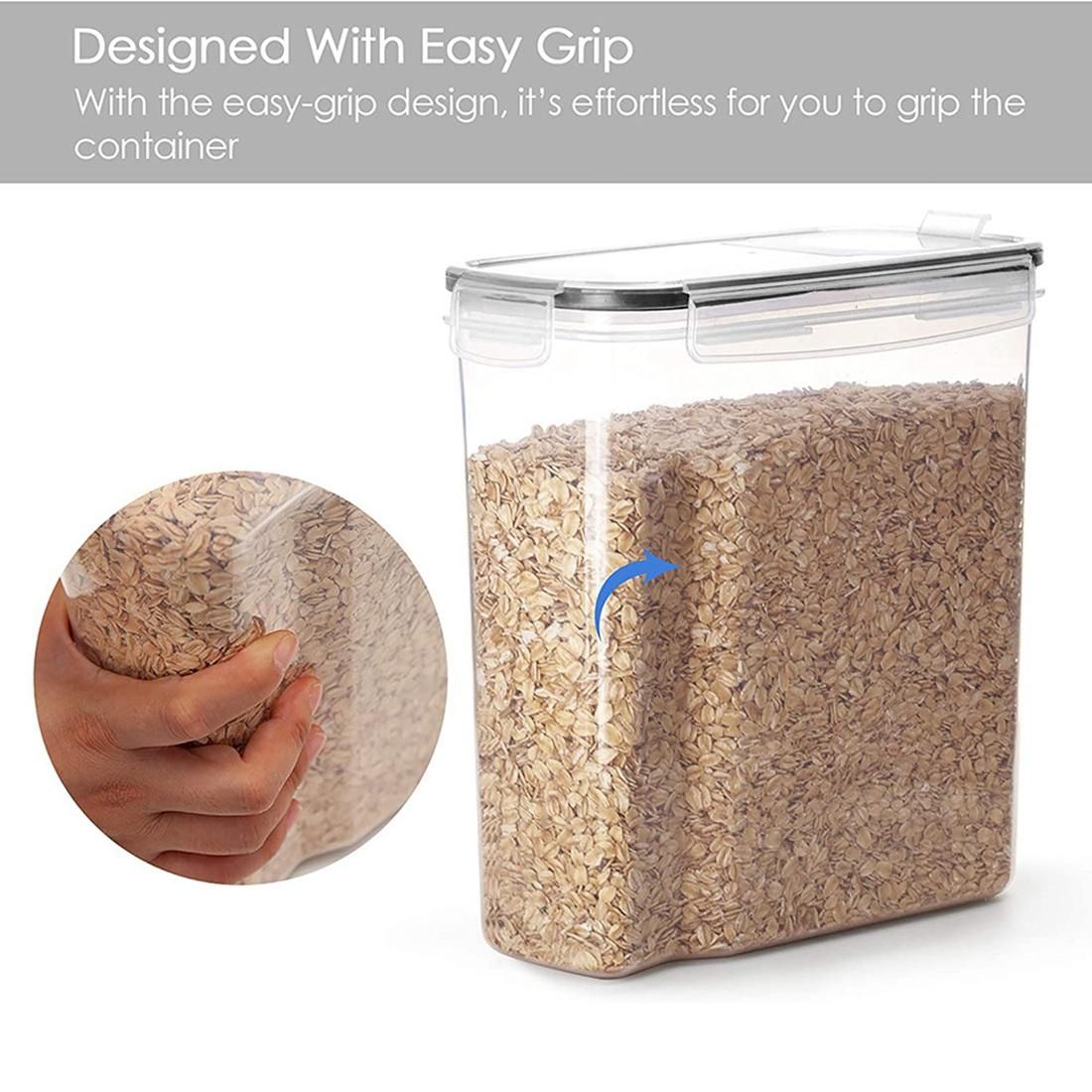 No More Stale Cereal----Cereal is chosen by many people at breakfast, but it tends to go stale easily. Almost as soon as the box is opened, the crispy deliciousness of the cereal disappears. Why not choose cereal storage containers? The 4 Sided-Locking Lids with silicone seal ensure that no air or water enters in, keeping your cereal super fresh.