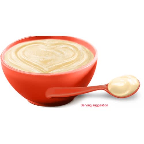 Milled corn, rice and banana porridge with milk. The smooth texture of our creamed banana porridge makes it suitable as a first weaning food. Our deliciously creamy banana porridge comes in a resealable pack for safe and easy storage, contains added vitamin A, C and D, is gluten-free and contains no preservatives, no added sugar or salt*.
