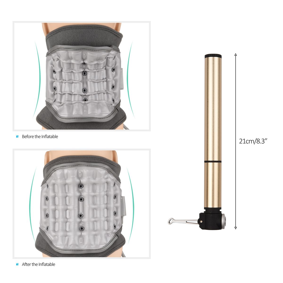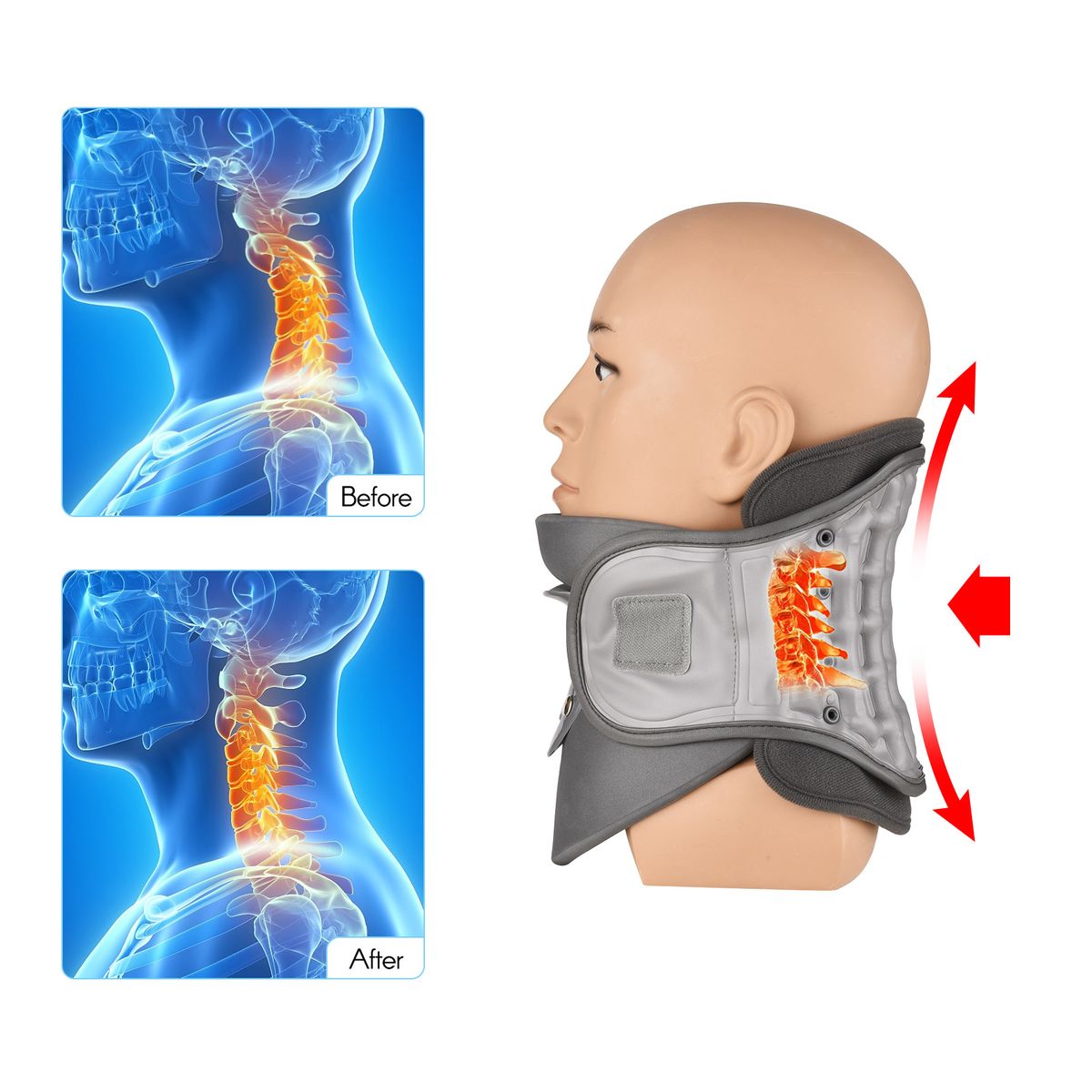 Adjustable traction can be controlled by releasing or increasing the pressure of the inflatable pump, easily opening cervical space and reducing cervical friction.