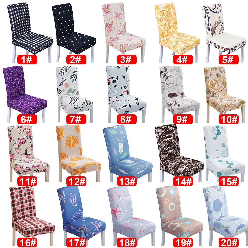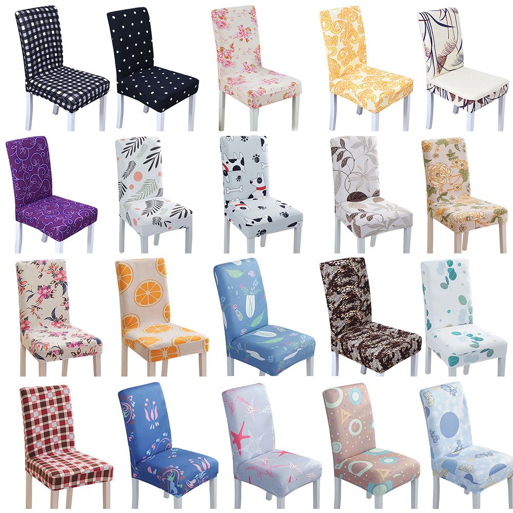 Chair Cover Colorful Floral Polka Dot Checked Print Universal Removable Washable Elastic Cloth Highly Stretch Seat Cover Home Dining Room Hotel Wedding Banquet Party Decoration