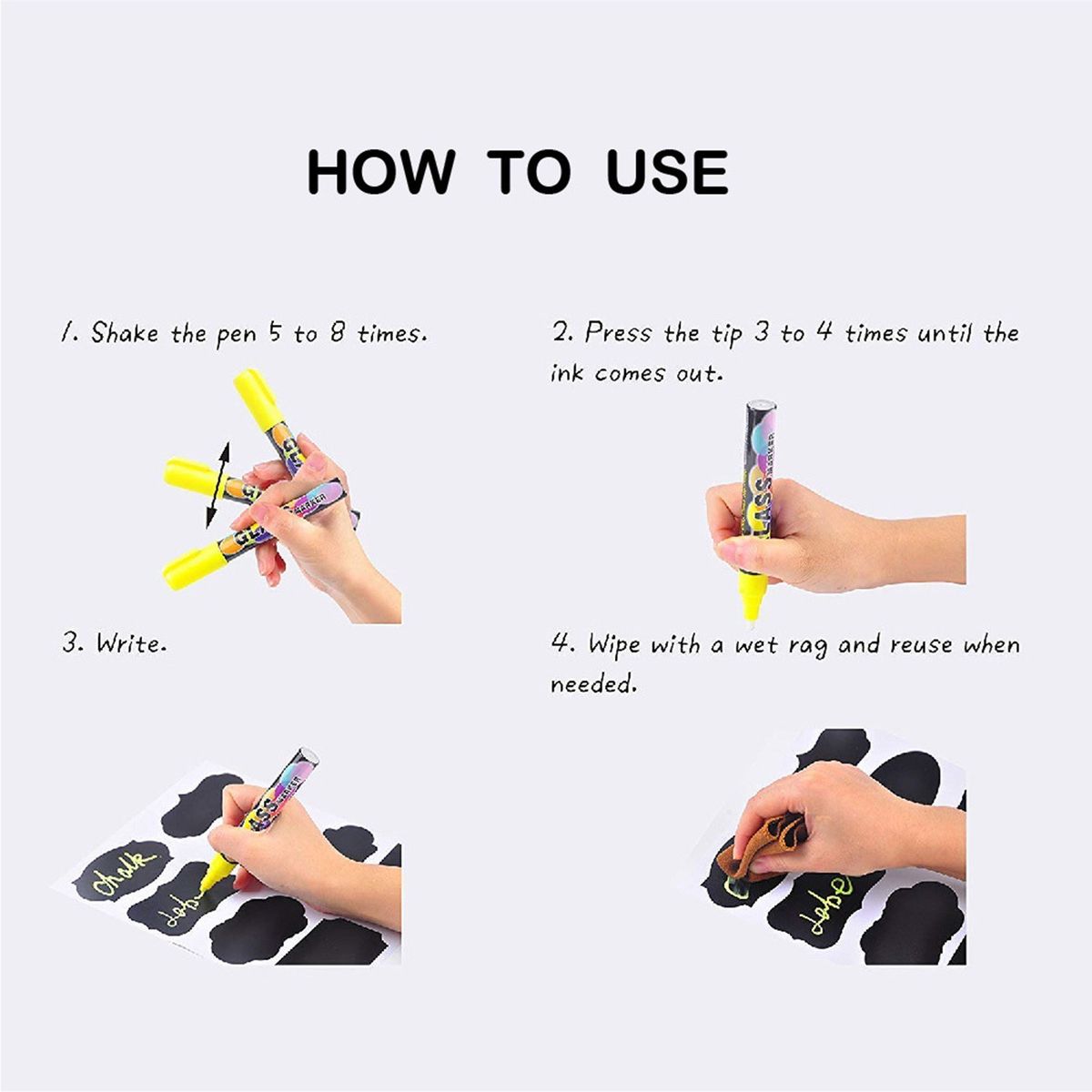 Reusable sticker, allow liquid chalk marker to write on, easy to clean with wet cloth.