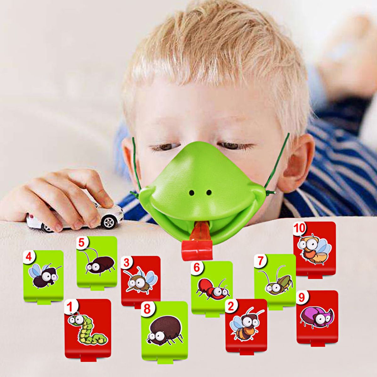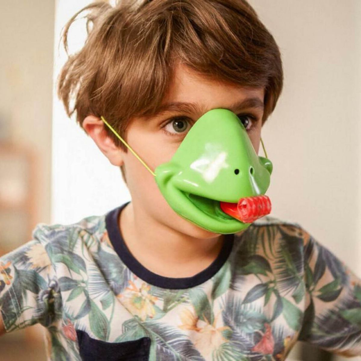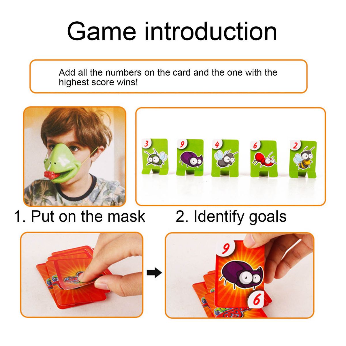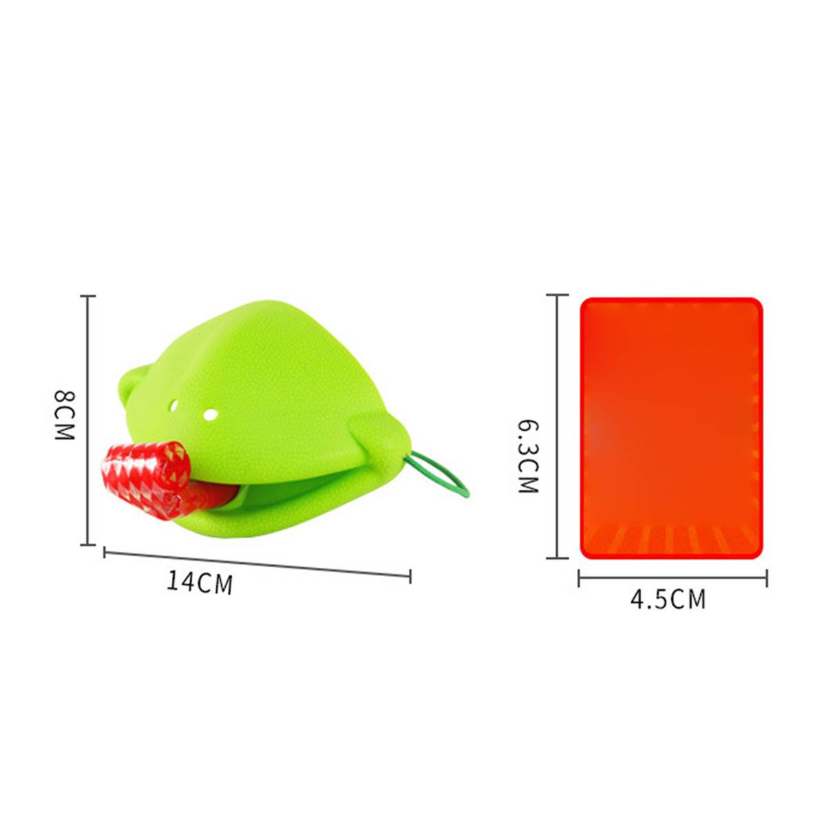 The length of the frog mask toy is 14cm, the width is 8cm, the length of the card is 4.5cm, the width is 6.3cm.
