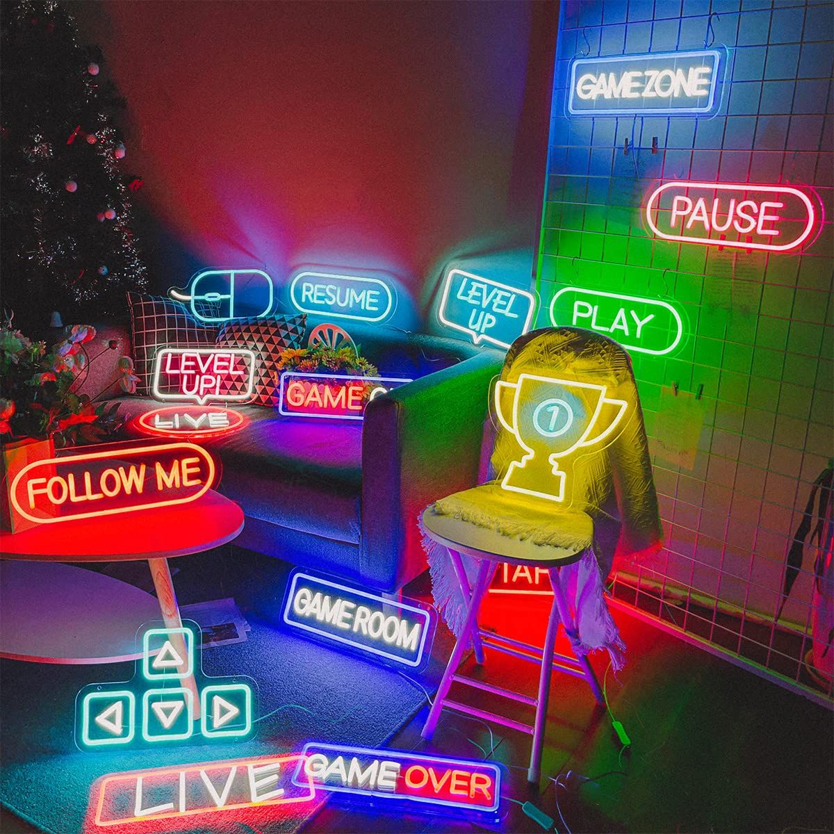 [Atmosphere neon light] -You can easily use the attached hooks and chains to hang the LED neon lights on the wall, windows and game accessories in the bar area of the player's room decoration or gathering.