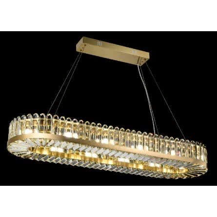Sophisticated oval crystal chandelier with a sleek gold frame and dazzling crystal accents. This modern masterpiece radiates a brilliant glow, perfect for creating a luxurious ambiance in dining rooms, living spaces, or grand entryways. A statement piece for contemporary interiors 16 watts