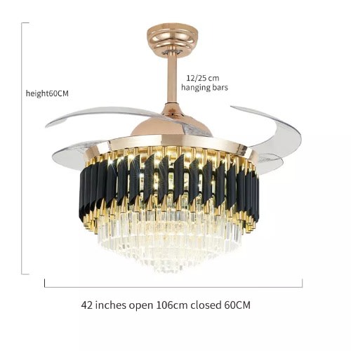 Chandelier Ceiling Fan Light With Bluetooth Speaker And Remote Control - 500mm - 50cm
