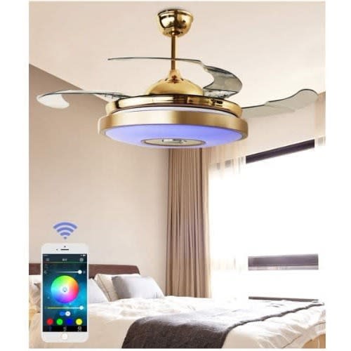 When you turn on the ceiling fan, the blades will stretch out, while when you turn off the fan, the blades will put inside automatically. Exclusive motor technology and remote system that ensure your fan will remain Quiet for life. And warm lights give you a bright sight