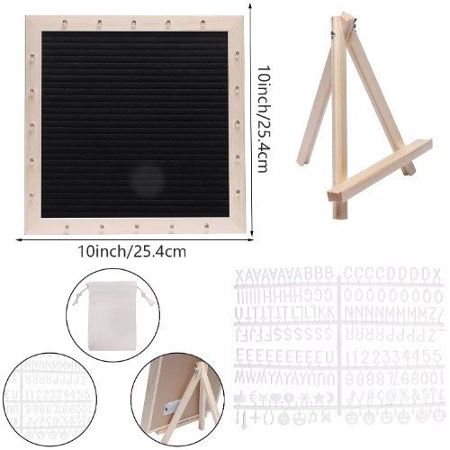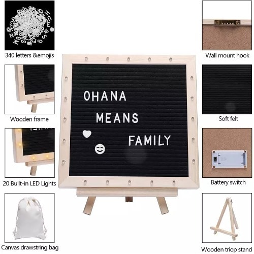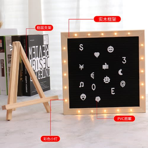 Black Felt Letter Board with LED Lights- 10 *10 Inch Changeable Message Board Built-in LED Lights letter board wooden frame