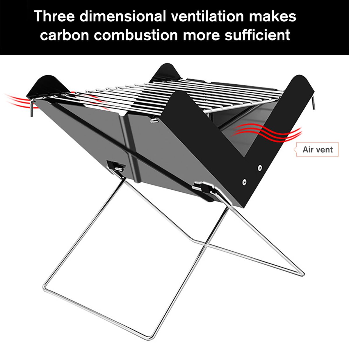 Easy to Carry -Foldable design, easy to clean. The ventilation design makes the airflow well, the charcoal burning efficiency is high, and the food cooking speed is fast.
