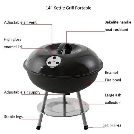 14" PORTABLE CHARCOAL BARBECUE KETTLE