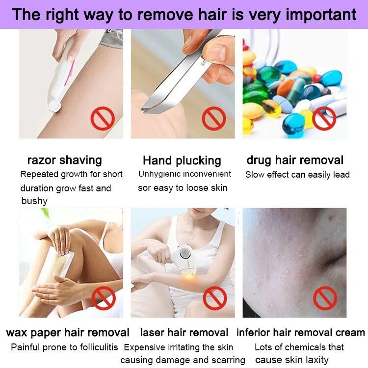 Remove the nest hair from the root, lasting up to 4 weeks, re-growth hair is finer