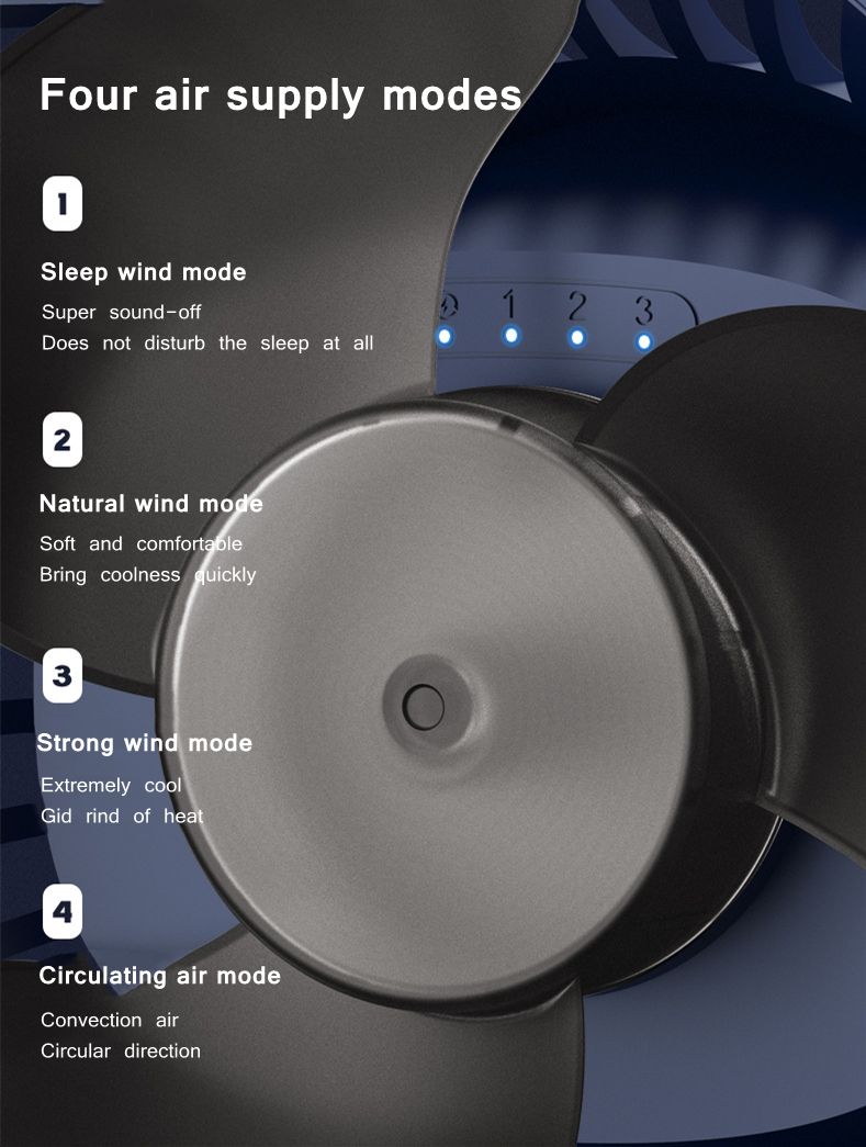 3. It has 4 wind modes--sleep wind,cool breeze,natural wind and strong wind,meet different needs at different moments.