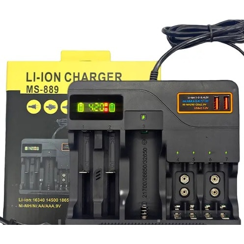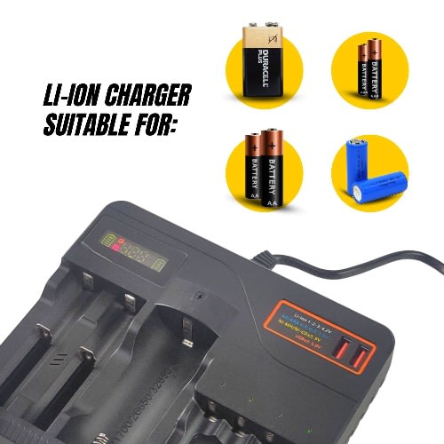 Slim and portable design. Rapid charger for 18650 battery. Only charge two battery per time. With LED indicators. Provide best protection for your batteries. Suitable for: 3.7V lithium rechargeable batteries. Designed to charge your batteries quickly and safely.